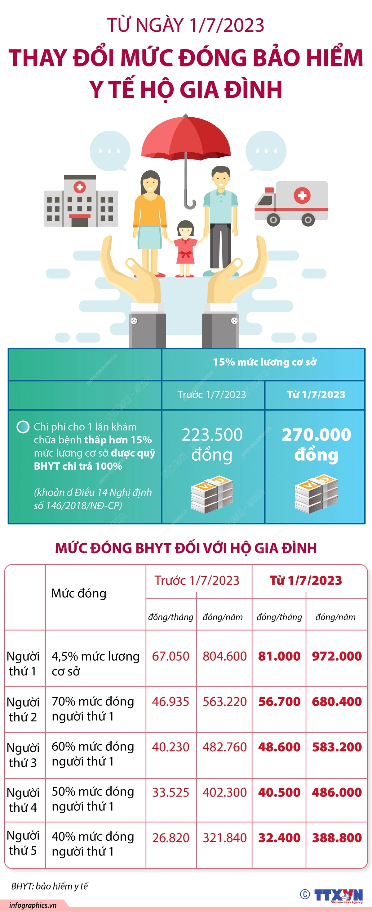 Từ ngày 1/7/2023, thay đổi mức đóng bảo hiểm y tế hộ gia đình