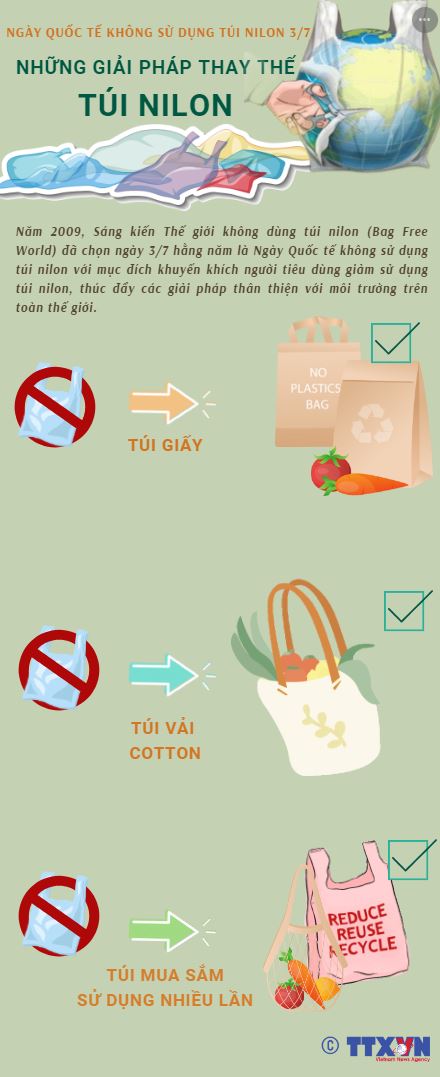 Năm 2009, Sáng kiến Thế giới không dùng túi nilon (Bag Free World) đã chọn ngày 3/7 hằng năm là Ngày Quốc tế không sử dụng túi nilon với mục đích khuyến khích người tiêu dùng giảm sử dụng túi nilon, thúc đẩy các giải pháp thân thiện với môi trường trên toàn thế giới.