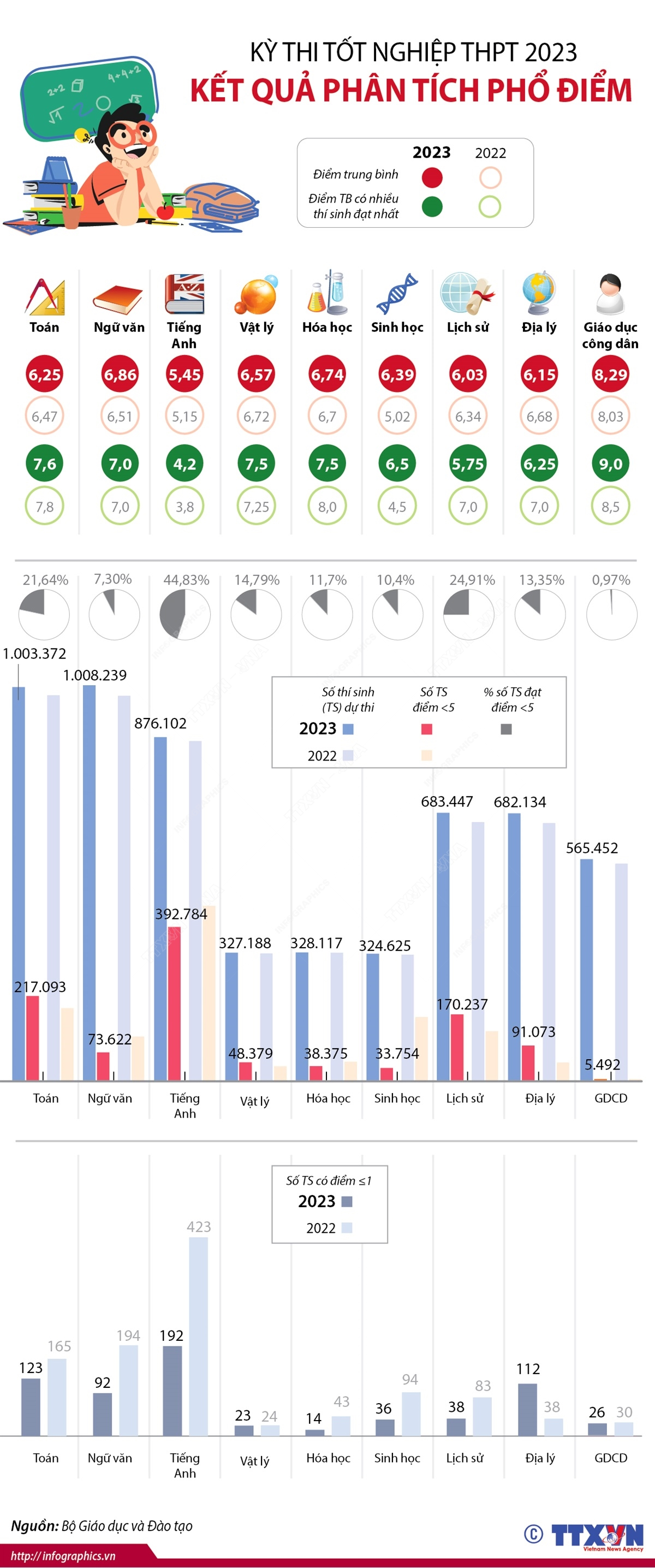 Kỳ thi tốt nghiệp THPT 2023: Kết quả phân tích phổ điểm