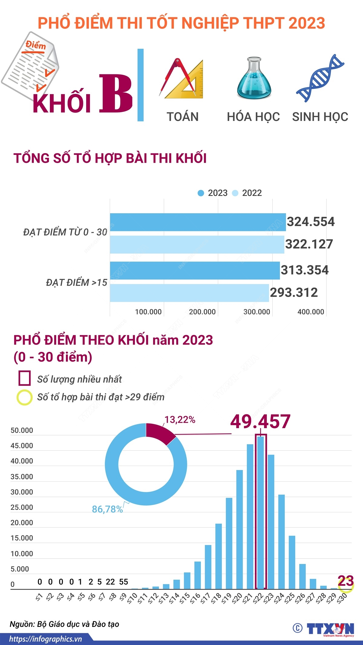 Phổ điểm thi tốt nghiệp THPT 2023 khối B (Toán, Hóa học, Sinh học)