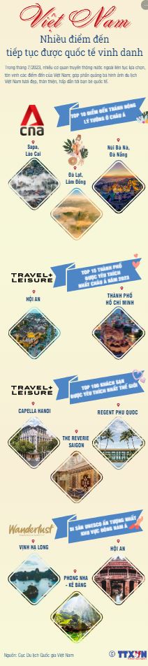 Trong tháng 7/2023, nhiều cơ quan truyền thông nước ngoài liên tục lựa chọn, tôn vinh các điểm đến của Việt Nam; góp phần quảng bá hình ảnh du lịch Việt Nam tươi đẹp, thân thiện, hấp dẫn tới bạn bè quốc tế.