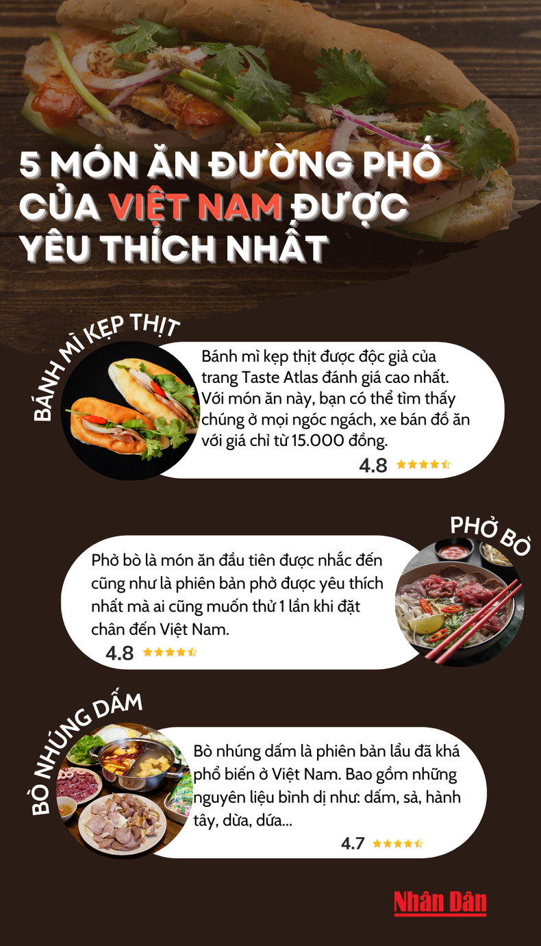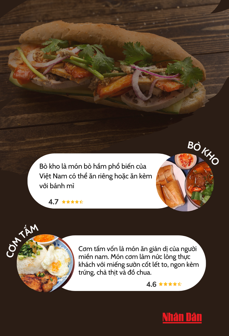Tính đến ngày 16/8, bánh mì kẹp thịt của Việt Nam được độc giả trên trang ẩm thực Taste Atlas đánh giá yêu thích nhất, với 4,8 sao. Ngoài ra, các món ăn khác như: phở, bò kho, bò nhúng dấm, bánh mì nói chung cũng nằm trong tốp 5 món ăn được bình chọn cao.