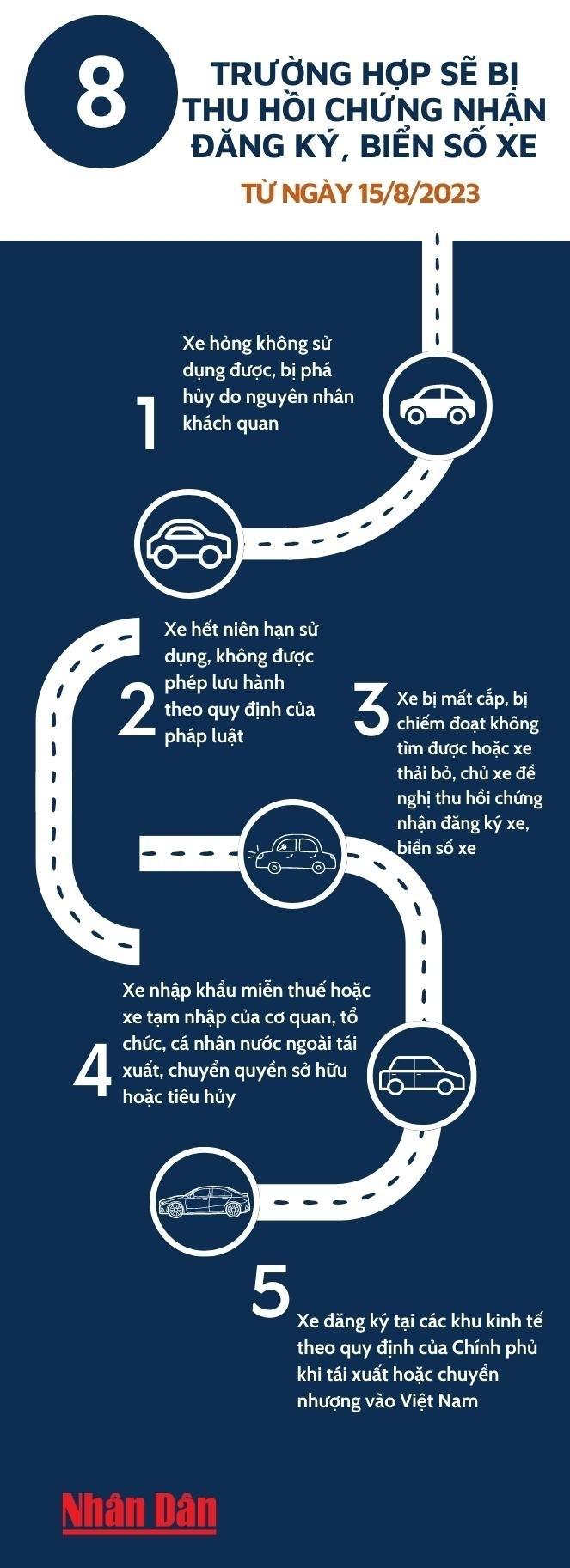 Theo Thông tư 24/2023/TT-BCA về cấp, thu hồi đăng ký, biển số xe cơ giới, từ ngày 15/8, có 8 trường hợp sẽ bị thu hồi chứng nhận đăng ký, biển số xe. Cụ thể, người dân cần lưu ý nội dung sau.