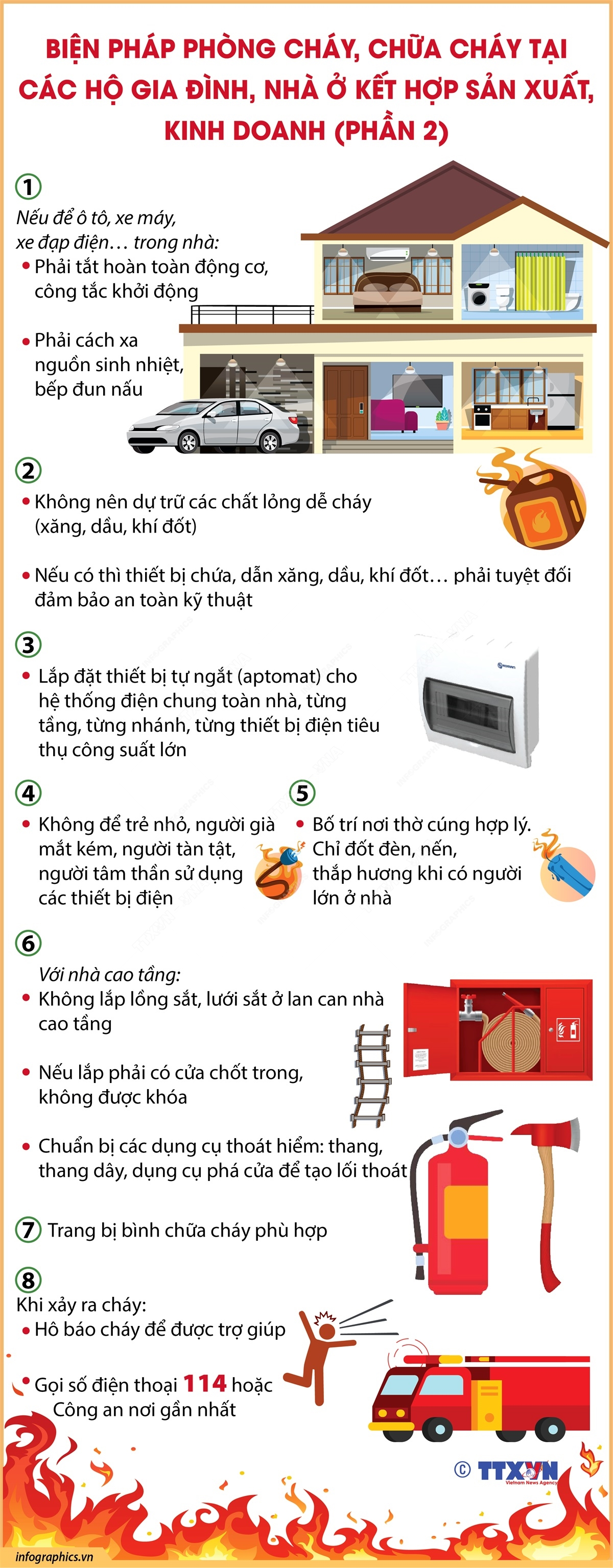 Biện pháp phòng cháy, chữa cháy tại các hộ gia đình, nhà ở kết hợp sản xuất, kinh doanh (phần 2)