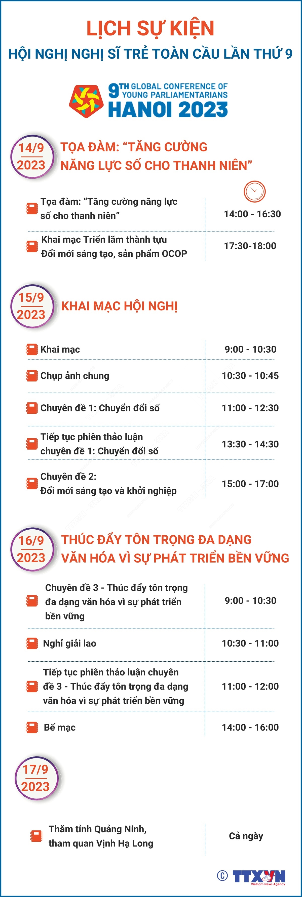 Lịch sự kiện Hội nghị Nghị sĩ trẻ toàn cầu lần thứ 9