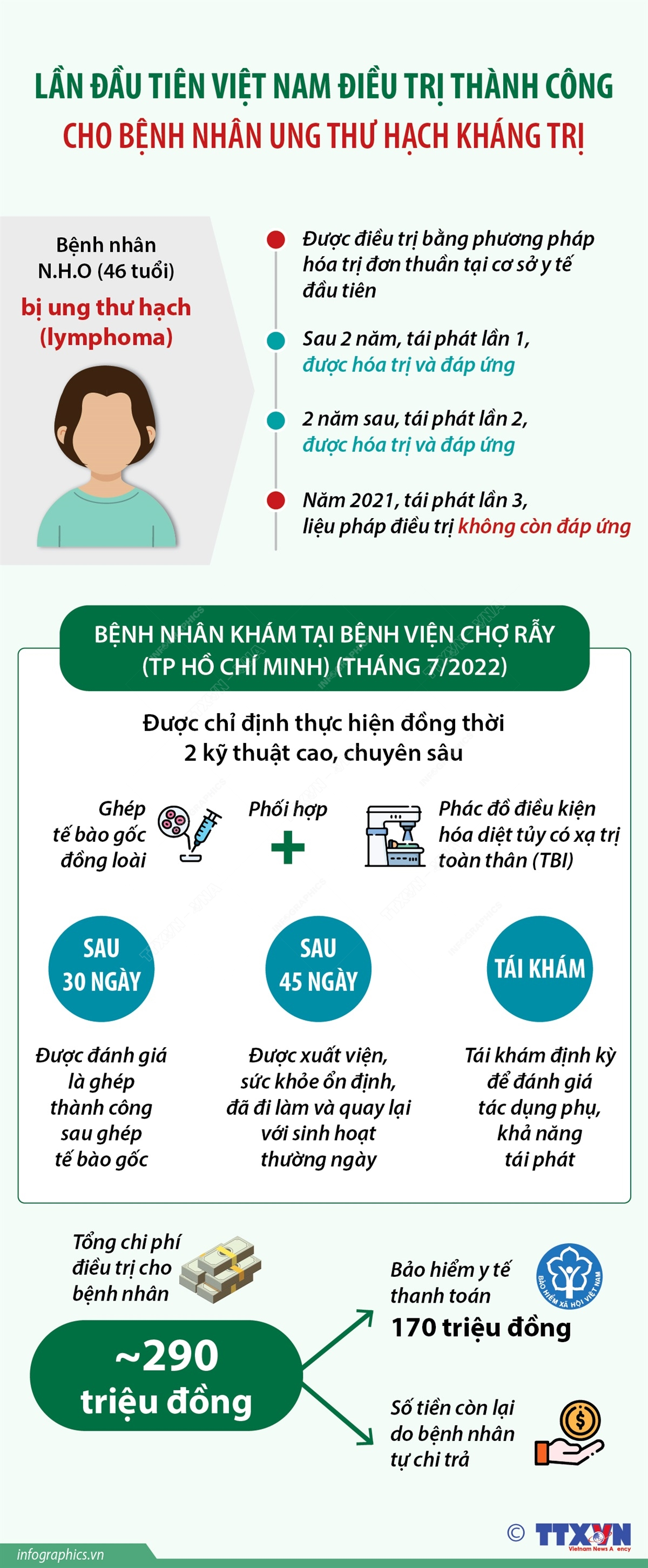 Bệnh viện Chợ Rẫy (Thành phố Hồ Chí Minh) cho biết, lần đầu tiên bệnh viện phối hợp thực hiện hai kỹ thuật cao, chuyên sâu là phương pháp ghép tế bào gốc đồng loại và phương pháp xạ trị toàn thân điều trị thành công cho một bệnh nhân 46 tuổi bị ung thư hạch tái phát lần 3 và kháng trị với nhiều phác đồ điều trị. Việc điều trị thành công cho bệnh nhân bị ung thư hạch đã mở ra cơ hội cho các bệnh nhân ung thư.