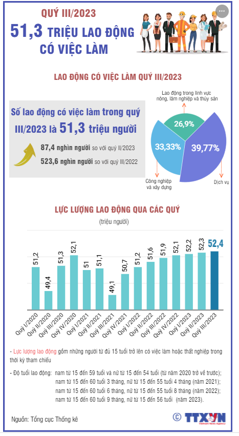 Quý III/2023: 51,3 triệu lao động có việc làm