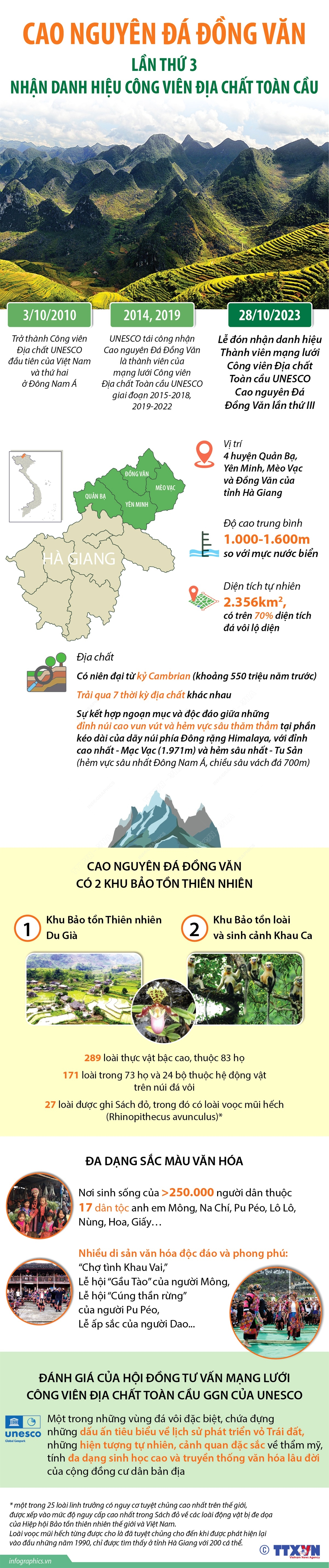 Lễ đón nhận danh hiệu Thành viên mạng lưới Công viên Địa chất Toàn cầu UNESCO Cao nguyên Đá Đồng Văn lần thứ III và Lễ hội “Hoa Tam giác mạch” lần thứ IX năm 2023. Cao nguyên Đá Đồng Văn trở thành Công viên Địa chất UNESCO đầu tiên của Việt Nam và thứ hai ở Đông Nam Á vào ngày 3/10/2010. Năm 2014 và năm 2019, UNESCO đã tái công nhận Cao nguyên Đá Đồng Văn là thành viên của mạng lưới Công viên Địa chất Toàn cầu UNESCO giai đoạn 2015-2018 và giai đoạn 2019-2022.