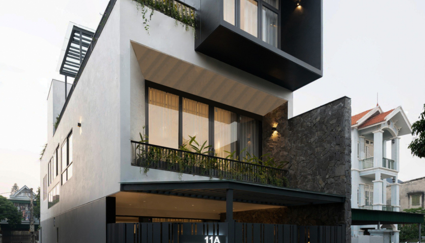 Ngoại thất của ngôi nhà được thiết kế tối giản. Ba khối nhà nằm chồng lên nhau, giống như được phân tách rõ ràng, với hai màu chủ đạo gồm trắng - đen, tạo điểm nhấn kích thích thị giác.