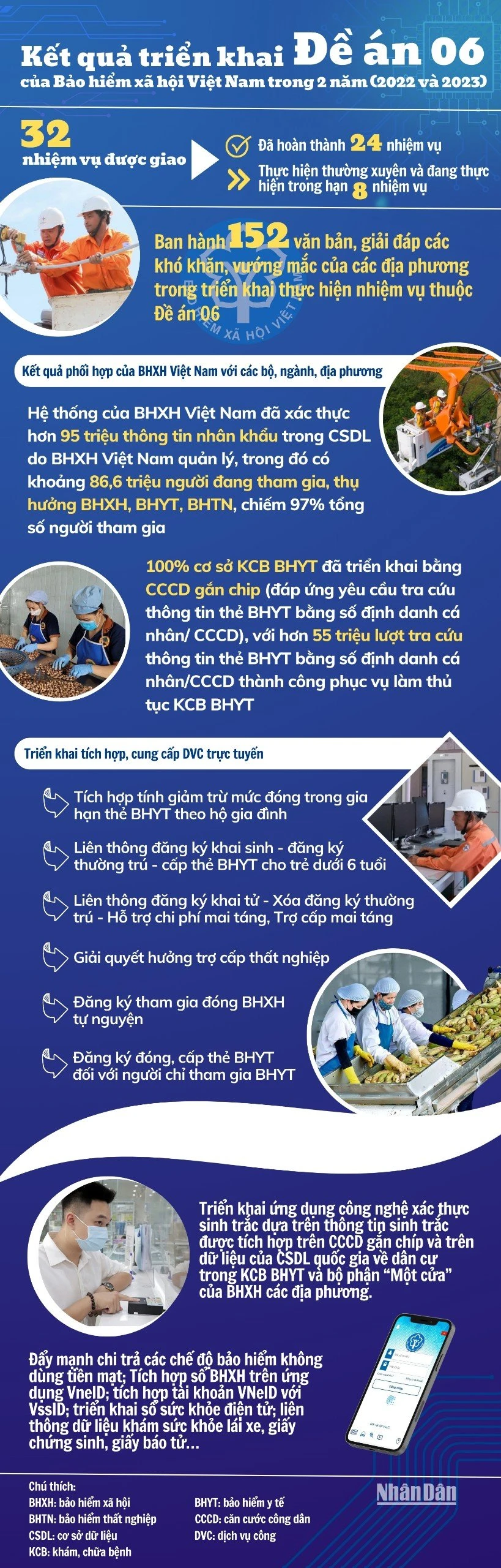 Sau 2 năm triển khai Đề án 06, Bảo hiểm xã hội Việt Nam đã triển khai tích hợp, cung cấp 6 nhóm dịch vụ công trực tuyến về bảo hiểm xã hội và an sinh xã hội. Điều này tạo điều kiện thuận lợi hơn cho người dân và doanh nghiệp trong thực hiện thủ tục hành chính.