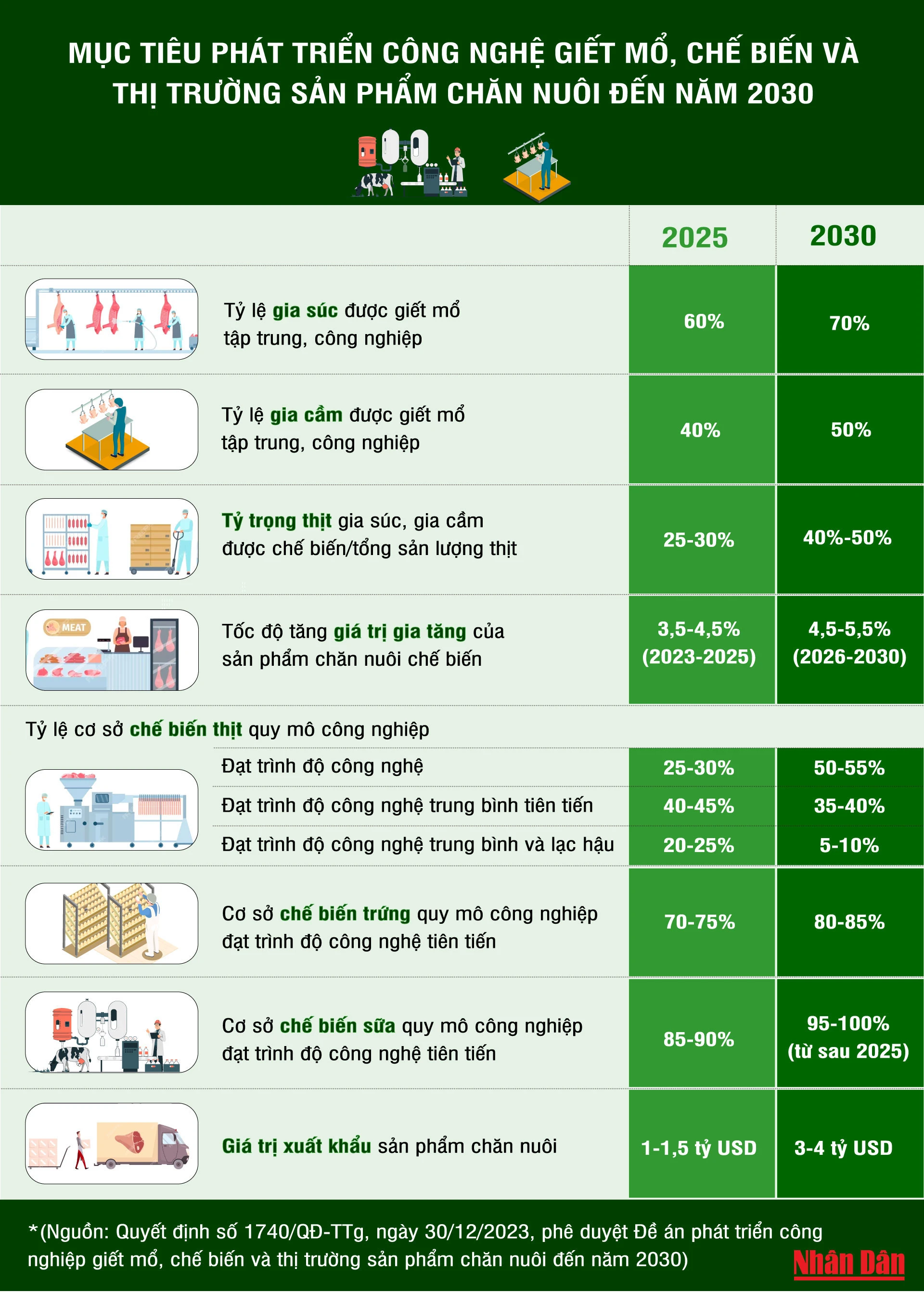Mục tiêu phát triển công nghiệp giết mổ, chế biến và thị trường sản phẩm chăn nuôi đến năm 2030