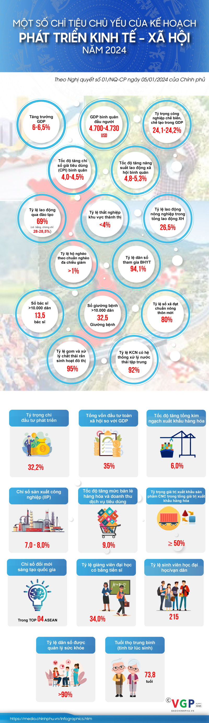 Tại Nghị quyết 01/NQ-CP về nhiệm vụ, giải pháp chủ yếu thực hiện Kế hoạch phát triển kinh tế - xã hội và dự toán ngân sách nhà nước năm 2024, Chính phủ đã xác định rõ nhiều chỉ tiêu cụ thể căn cứ theo tình hình thực tế và những dự báo khoa học.