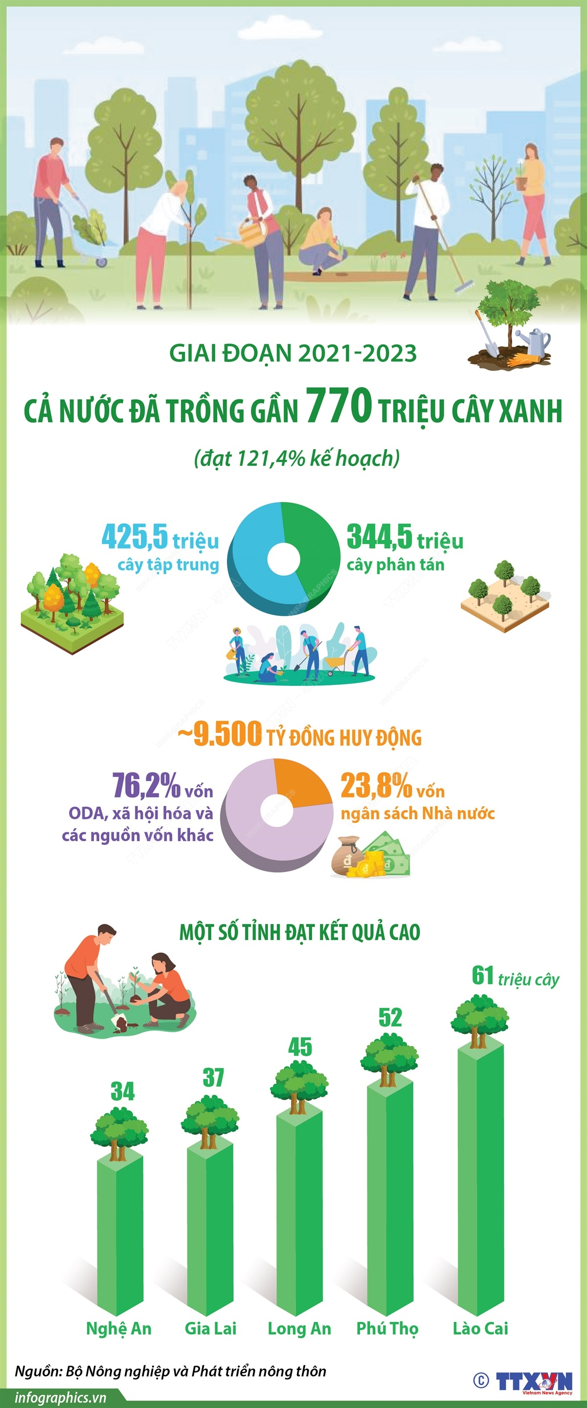 Trong 3 năm 2021 - 2023 thực hiện Đề án “Trồng một tỷ cây xanh giai đoạn 2021-2025” của Thủ tướng Chính phủ, cả nước đã trồng được gần 770 triệu cây xanh, đạt trên 121% so với kế hoạch.