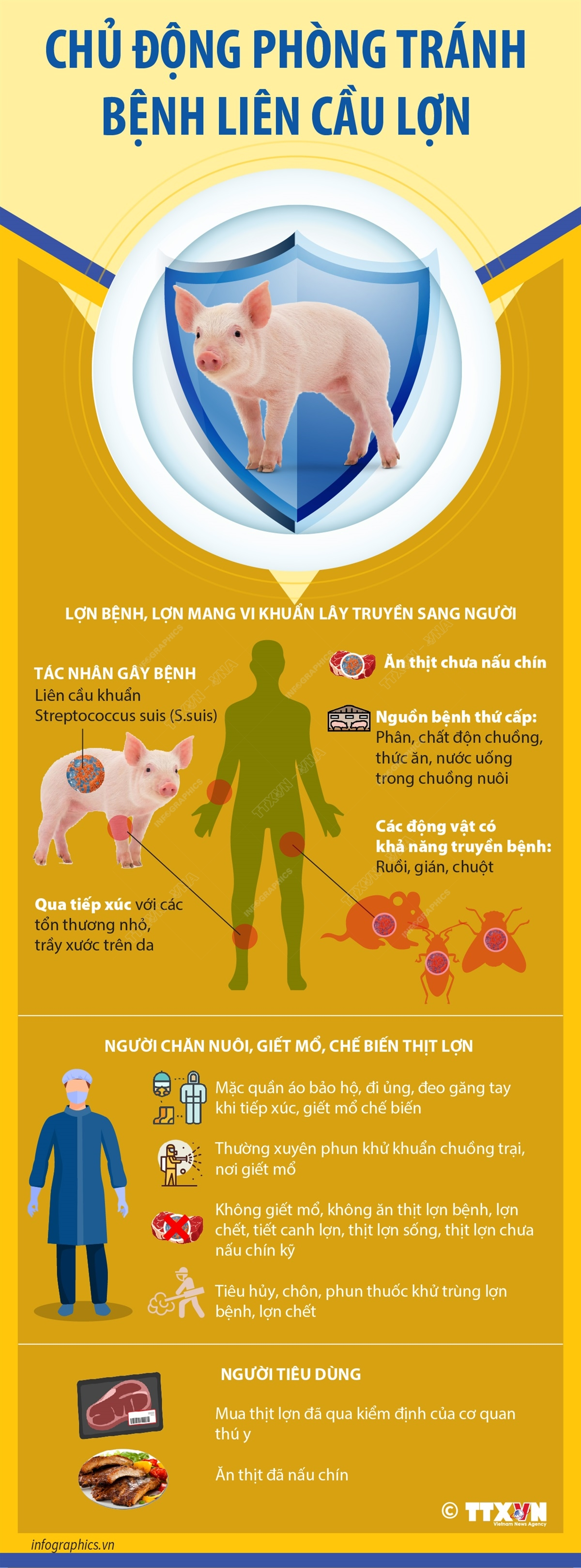 Bệnh liên cầu lợn ít gặp ở người, tuy nhiên, người có nguy cơ lây nhiễm và phát bệnh khi tiếp xúc với lợn bệnh hoặc các sản phẩm từ lợn bệnh. Biểu hiện lâm sàng chính là: viêm màng não, xuất huyết, viêm phổi, viêm cơ tim và viêm khớp. Những người bị bệnh nặng có thể tử vong do độc tố vi khuẩn gây sốc nhiễm khuẩn, viêm nội tâm mạc, suy đa phủ tạng, nhiễm khuẩn huyết…