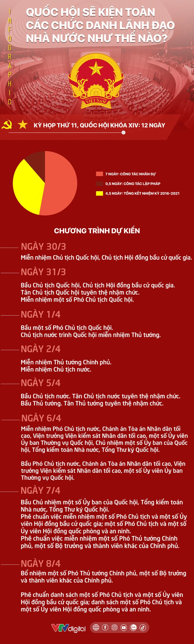 Tại kỳ họp thứ 11, Quốc hội dành 7 ngày để kiện toàn 25 chức danh lãnh đạo Nhà nước, bao gồm Chủ tịch nước, Thủ tướng, Chủ tịch Quốc hội và một số chức danh khác.