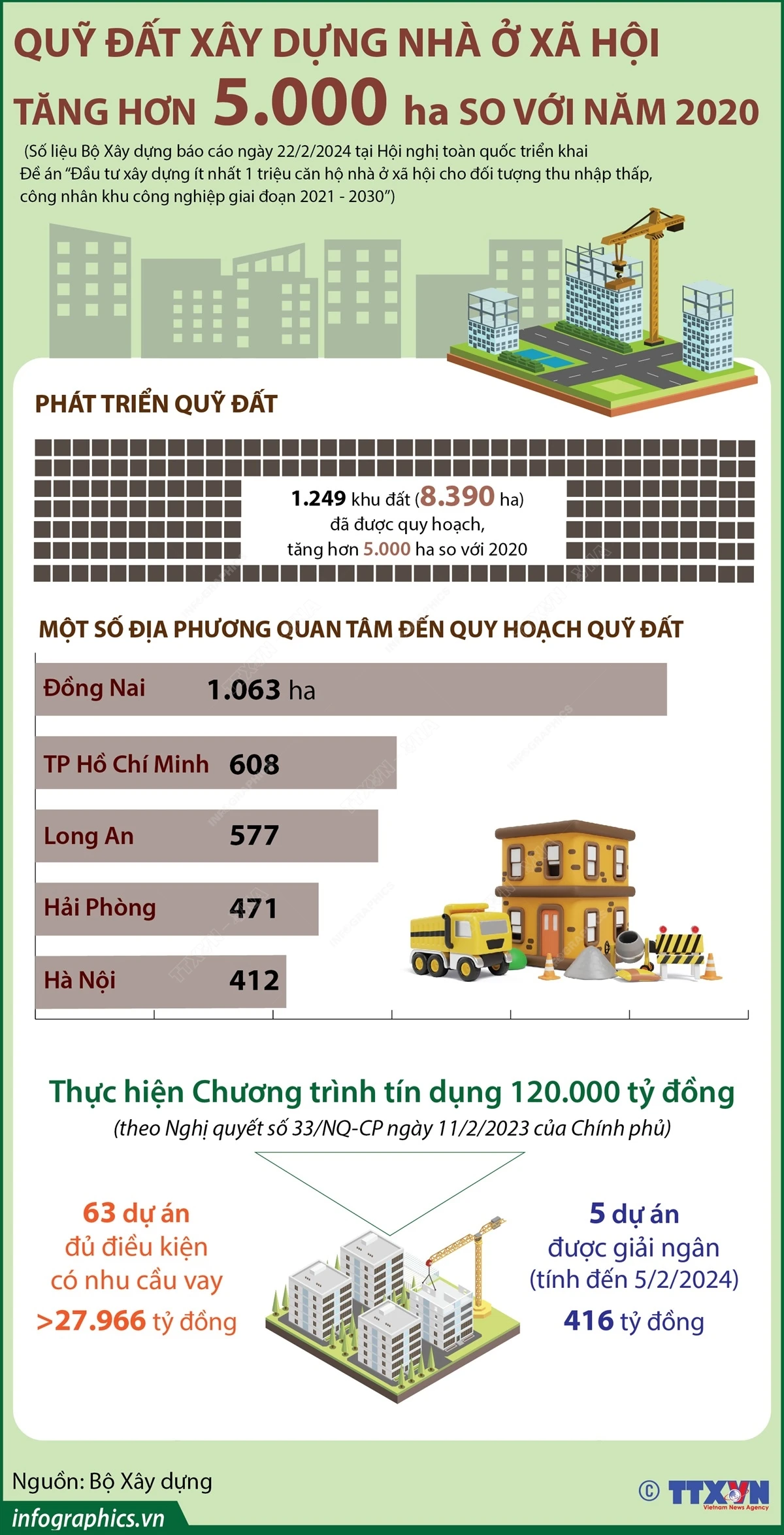Bộ Xây dựng cho biết hiện nay cả nước đã quy hoạch 1.249 khu đất, với quy mô 8.390ha làm nhà ở xã hội, tăng thêm hơn 5.000ha so với năm 2020.