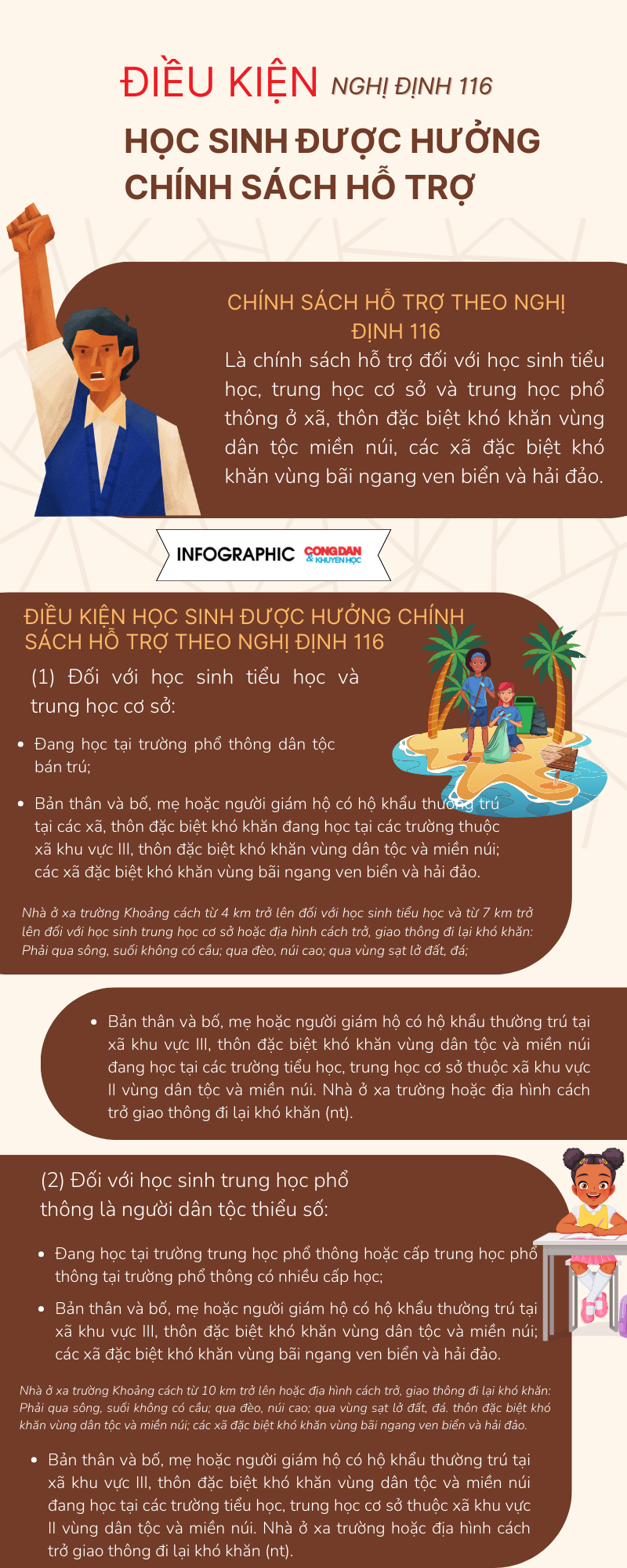 Điều kiện học sinh được hưởng chính sách hỗ trợ theo Nghị định 116