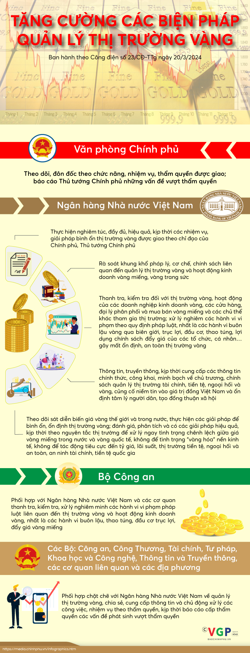 Thủ tướng Chính phủ ban hành Công điện số 23/CĐ-TTg ngày 20/3 nhằm tăng cường các biện pháp quản lý và phát triển thị trường vàng an toàn, lành mạnh, hiệu quả, bền vững.