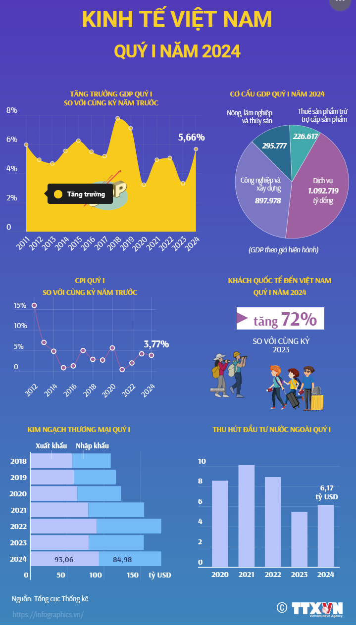 Toàn cảnh tình hình kinh tế Việt Nam quý I năm 2024