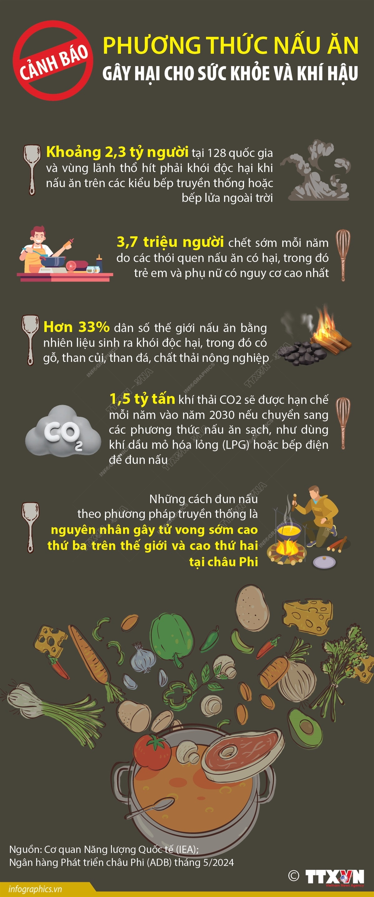 Thực trạng thiếu khả năng tiếp cận các phương pháp nấu ăn sạch trên toàn thế giới đang là nguyên nhân gây ra hàng triệu ca tử vong mỗi năm và khiến Trái Đất ấm lên. Theo Cơ quan Năng lượng Quốc tế (IEA) và Ngân hàng Phát triển châu Phi (ADB), khoảng 2,3 tỷ người tại 128 quốc gia và vùng lãnh thổ hít phải khói độc hại khi nấu ăn trên các kiểu bếp truyền thống hoặc bếp lửa ngoài trời. Mỗi năm có 3,7 triệu người chết sớm do các thói quen nấu ăn có hại, trong đó trẻ em và phụ nữ có nguy cơ cao nhất.