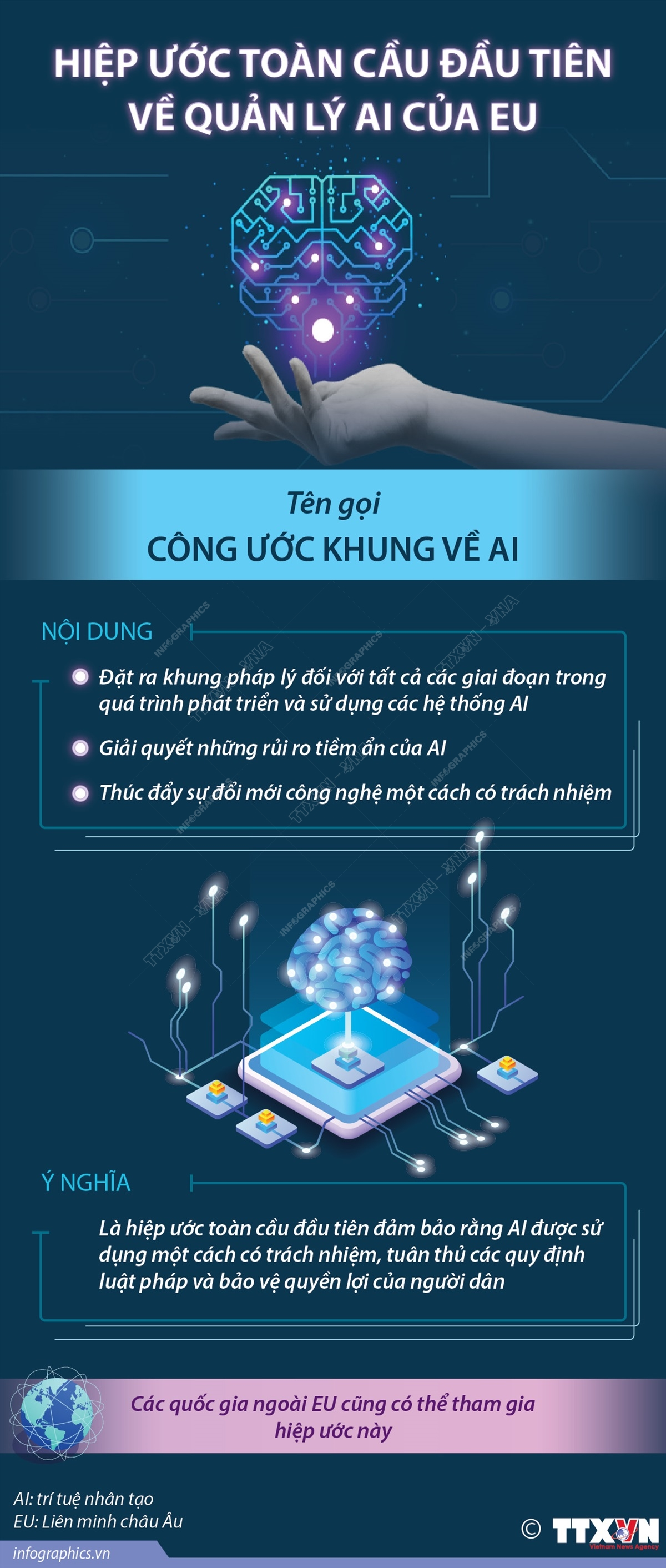 Hội đồng châu Âu (EC) ngày 17/5/2024 đã thông qua hiệp ước toàn cầu đầu tiên mang tính ràng buộc về mặt pháp lý liên quan các quy định quản lý việc sử dụng trí tuệ nhân tạo (AI).