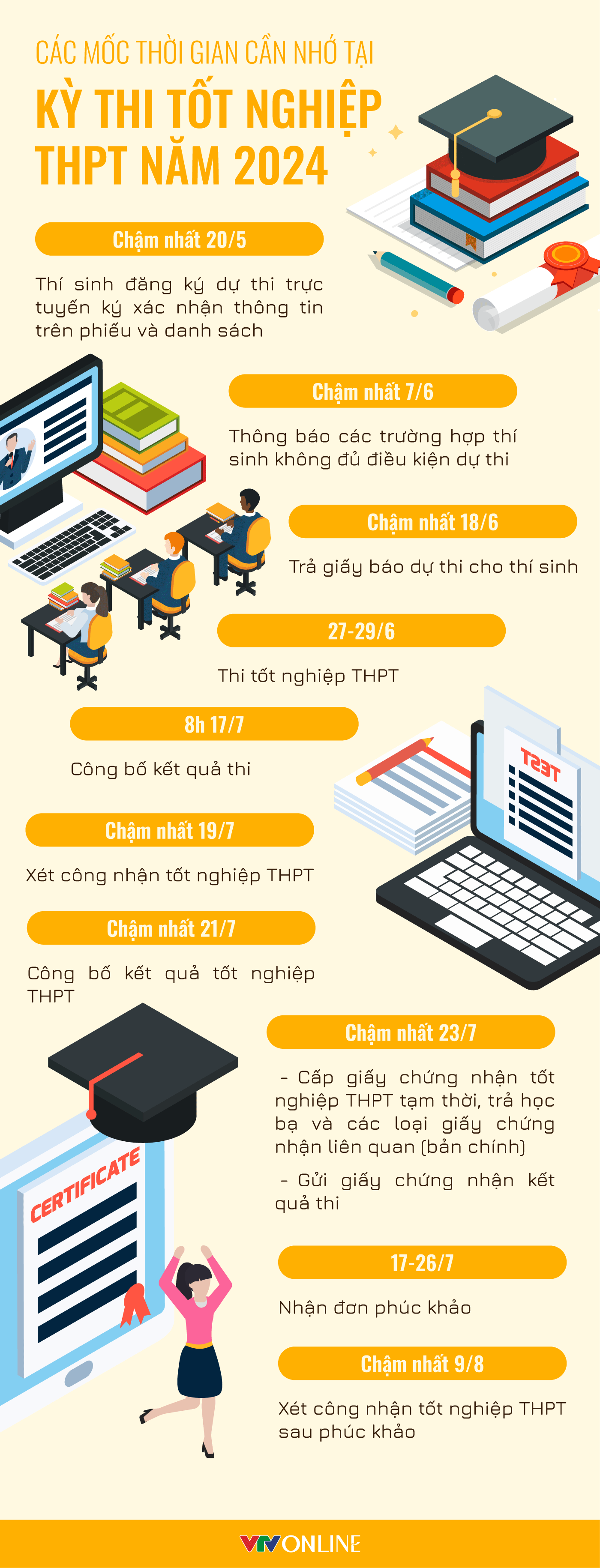 Trước và sau ngày thi tốt nghiệp THPT được tổ chức vào 27, 28 và 29/6/2024 có nhiều mốc thời gian quan trọng mà thí sinh cần lưu ý.