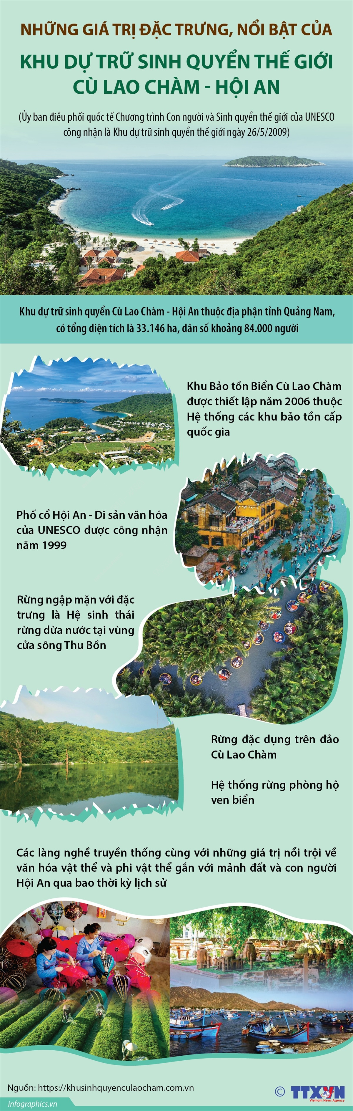 Cách đây 15 năm, ngày 26/5/2009, tại đảo Jeju - Hàn Quốc, Ủy ban điều phối quốc tế Chương trình Con người và Sinh quyển thế giới của UNESCO công nhận Cù Lao Chàm - Hội An là Khu dự trữ sinh quyển thế giới bởi giá trị đặc trưng, nổi bật: Khu Bảo tồn Biển Cù Lao Chàm được thiết lập năm 2006 thuộc Hệ thống các các khu bảo tồn cấp quốc gia; Phố cổ Hội An - Di sản văn hóa của UNESCO được công nhận năm 1999; Rừng ngập mặn với đặc trưng là Hệ sinh thái rừng dừa nước tại vùng cửa sông Thu Bồn; Rừng đặc dụng trên đảo Cù Lao Chàm; Hệ thống rừng phòng hộ ven biển; Các làng nghề truyền thống cùng với những giá trị nổi trội về văn hóa vật thể và phi vật thể gắn với mảnh đất và con người Hội An qua bao thời kỳ lịch sử.