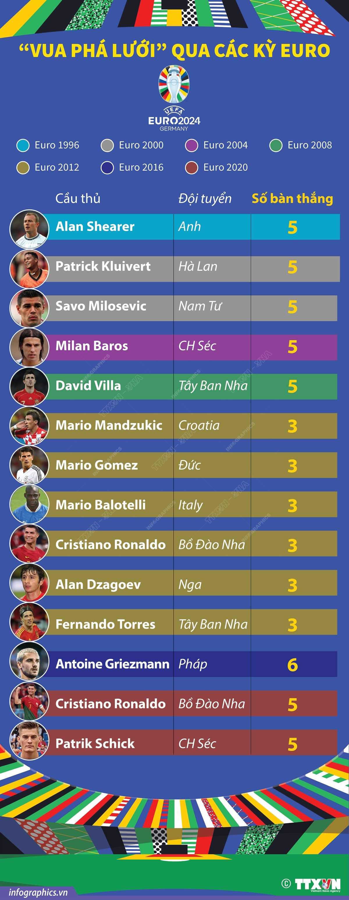 “Vua phá lưới” qua các kỳ EURO