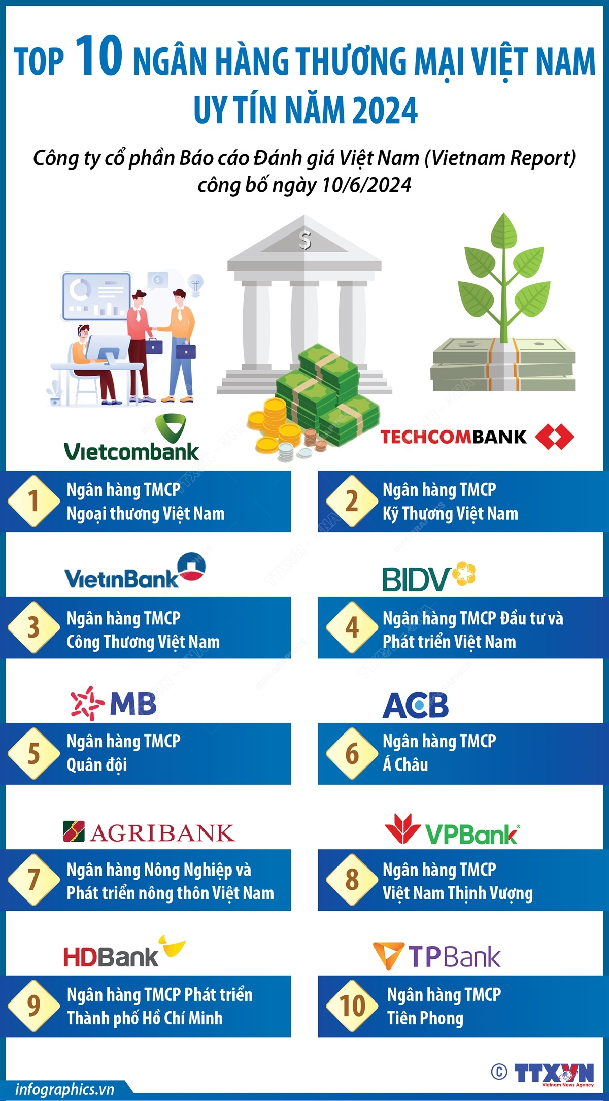 Top 10 ngân hàng thương mại Việt Nam uy tín năm 2024