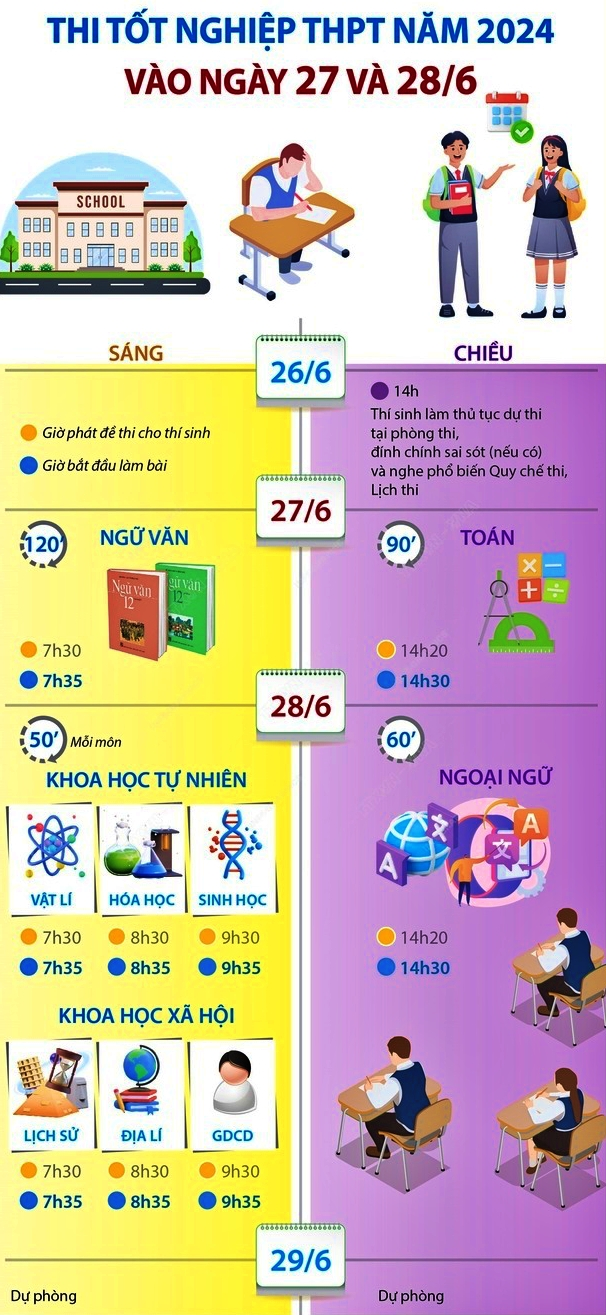 Kỳ thi tốt nghiệp Trung học phổ thông 2024 được tổ chức vào các ngày 26, 27, 28 và 29/6/2024. Thí sinh lưu ý một số điểm quan trọng sau đây: