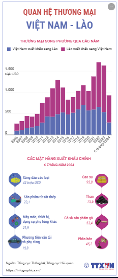 Việc tận dụng ưu đãi từ Hiệp định Thương mại hàng hóa ASEAN, Hiệp định Thương mại song phương Việt Nam - Lào, Hiệp định Thương mại biên giới Việt Nam - Lào đã góp phần thúc đẩy trao đổi thương mại giữa hai nước trong thời gian qua. Năm 2023, thương mại song phương đạt 1,63 tỷ USD, trong đó, Việt Nam xuất khẩu 533,5 triệu USD, nhập khẩu 1,1 tỷ USD. Trong 6 tháng năm 2024, trao đổi thương mại giữa hai nước đạt 927,8 triệu USD, tương đương khoảng 57% của cả năm 2023.