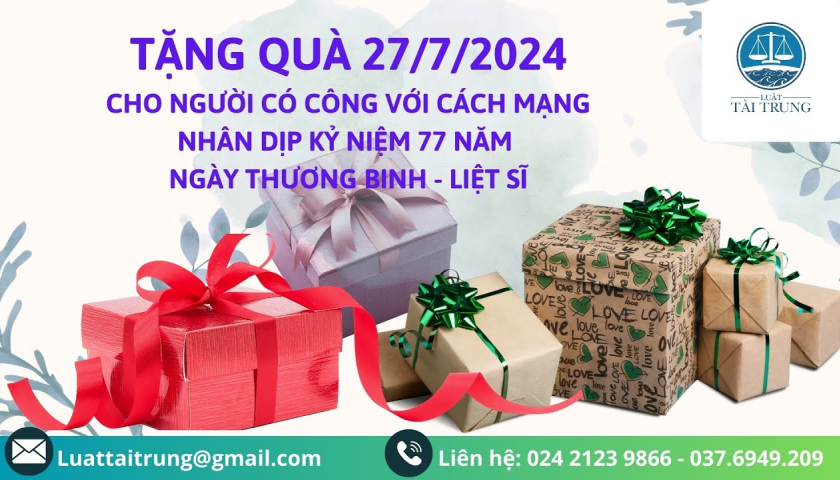 Theo quyết định số 590/QĐ-CTN Chủ tịch nước ký ngày 25/6/2024, quà tặng cho người có công với cách mạng nhân dịp kỷ niệm 77 năm Ngày Thương binh-Liệt sĩ (27/7/1947 - 27/7/2024) được chia thành hai mức 600.000 đồng và 300.000 đồng.