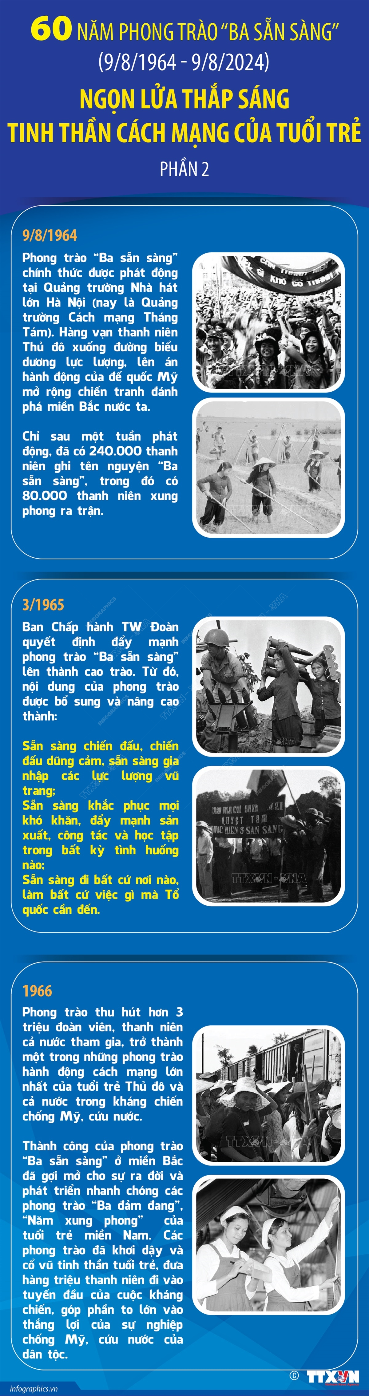 Cách đây tròn 60 năm, ngày 9/8/1964, Thành Đoàn Hà Nội đã phát động phong trào “Ba sẵn sàng”, cổ vũ tinh thần tuổi trẻ, khơi dậy phong trào cách mạng cho đoàn viên, thanh niên Hà Nội “Sẵn sàng chiến đấu; Sẵn sàng gia nhập các lực lượng vũ trang; Sẵn sàng đi bất cứ nơi đâu, làm bất cứ việc gì mà Tổ quốc cần đến”.