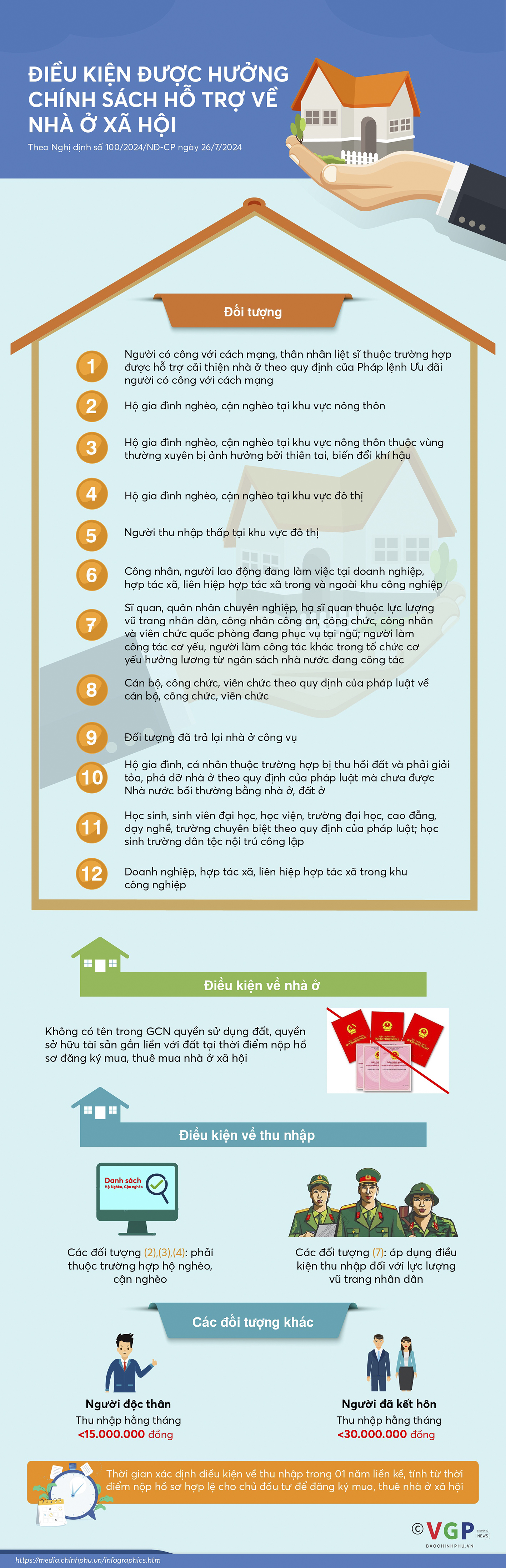 Nghị định số 100/2024/NĐ-CP quy định rõ điều kiện được hưởng chính sách hỗ trợ về nhà ở xã hội.