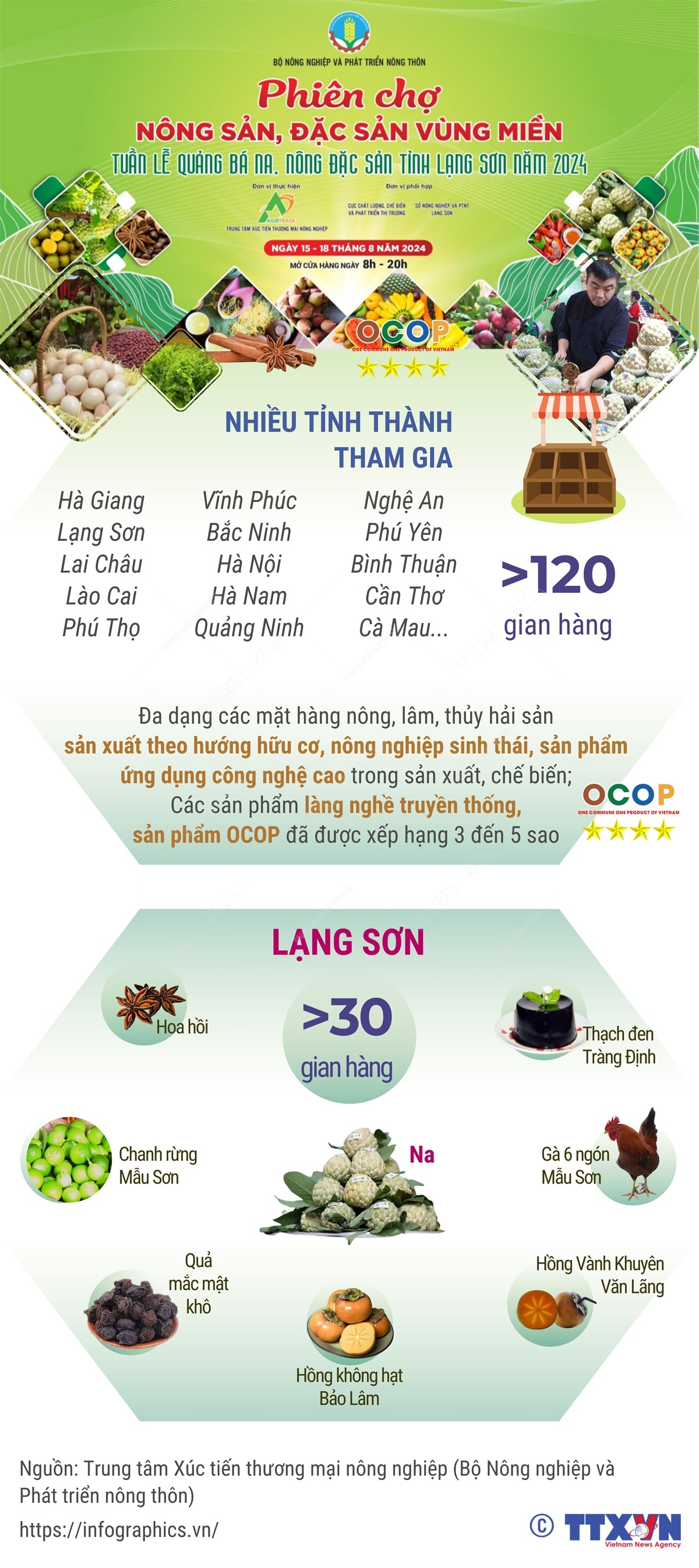 Tiếp nối thành công “Phiên chợ nông sản, đặc sản vùng miền” được tổ chức tháng 6/2024, Trung tâm Xúc tiến thương mại Nông nghiệp phối hợp với các đơn vị liên quan tổ chức Phiên 2 với chủ đề “Phiên chợ nông sản, đặc sản vùng miền; Tuần lễ quảng bá Na, nông đặc sản tỉnh Lạng Sơn năm 2024 tại Hà Nội năm 2024”.