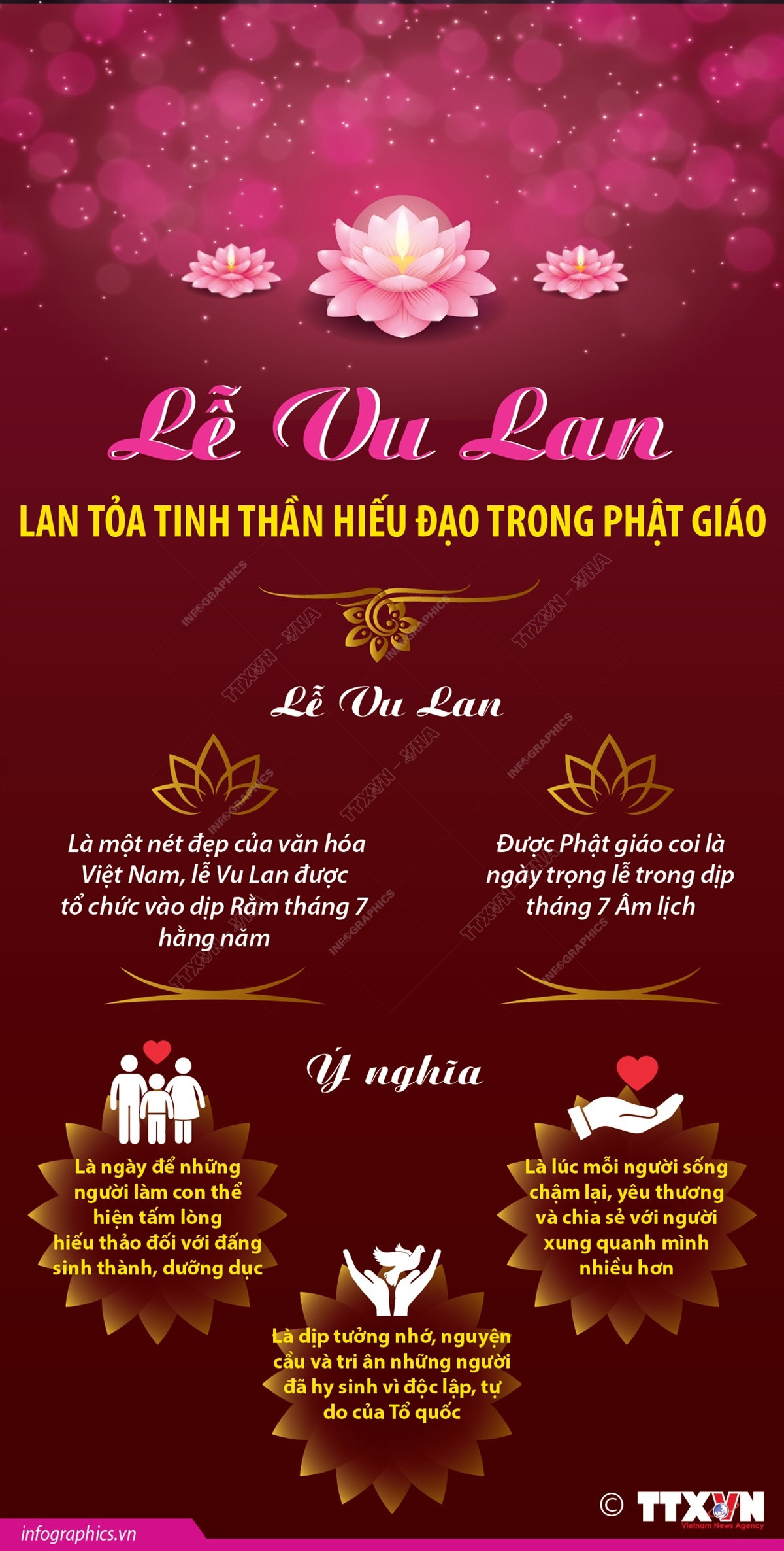 Là một nét đẹp của văn hóa Việt Nam, Lễ Vu Lan được tổ chức vào dịp Rằm tháng 7 hằng năm. Đây là dịp để mỗi người làm con thể hiện tấm lòng hiếu thảo đối với đấng sinh thành, dưỡng dục; là lúc để mỗi người sống chậm lại, yêu thương và chia sẻ với người xung quanh mình nhiều hơn.
