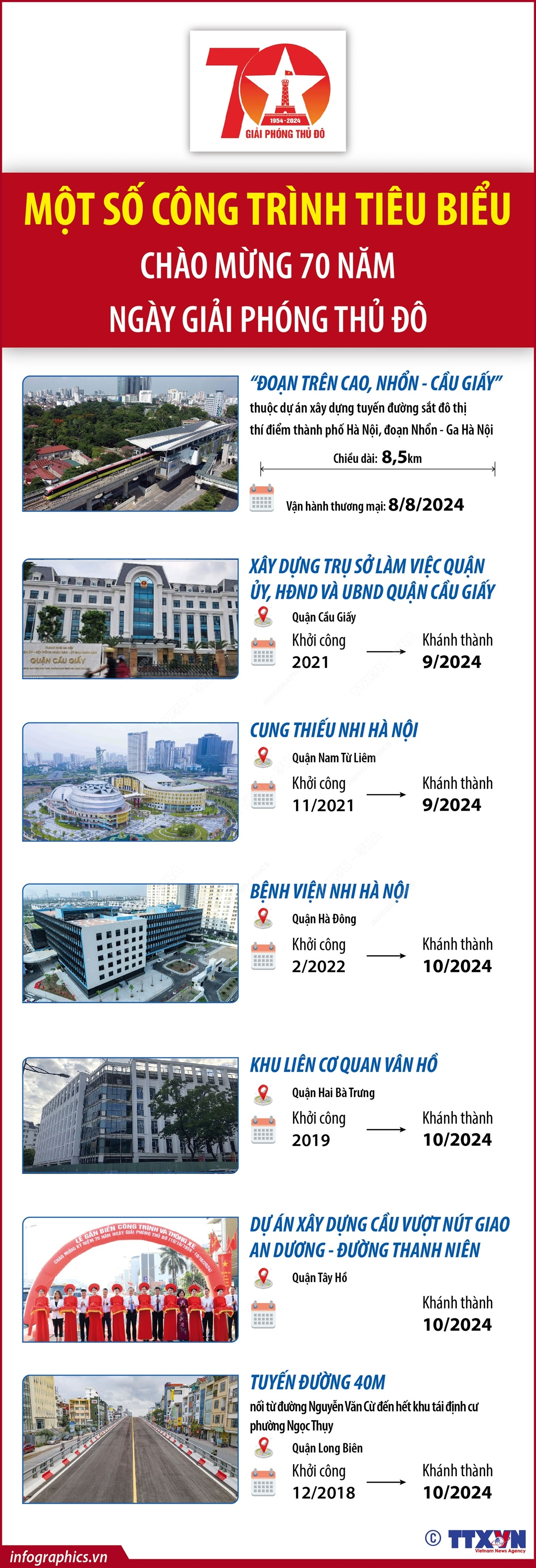 Một số công trình tiêu biểu chào mừng 70 năm Ngày Giải phóng Thủ đô