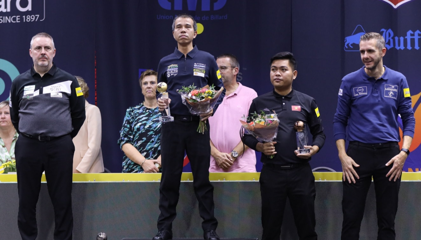 Trần Quyết Chiến đánh bại Frederic Caudron trong trận chung kết carom 3 băng World Cup diễn ra tại Veghel, Hà Lan. Đây là lần thứ hai trong năm nay, cơ thủ carom số 1 Việt Nam giành chức vô địch chặng của World Cup 3 băng.