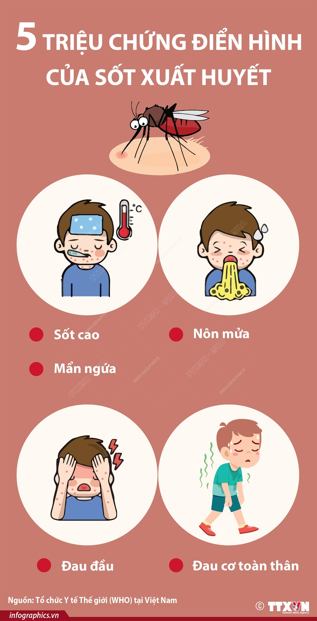 Theo dự báo của CDC Hà Nội, số ca mắc sốt xuất huyết có thể gia tăng nhanh trong thời gian tới. Nguyên nhân do đang là giai đoạn cao điểm dịch sốt xuất huyết hàng năm. Sốt cao, nôn mửa, mẩn ngứa, đau đầu, đau cơ toàn thân là 5 triệu chứng điển hình của sốt xuất huyết.