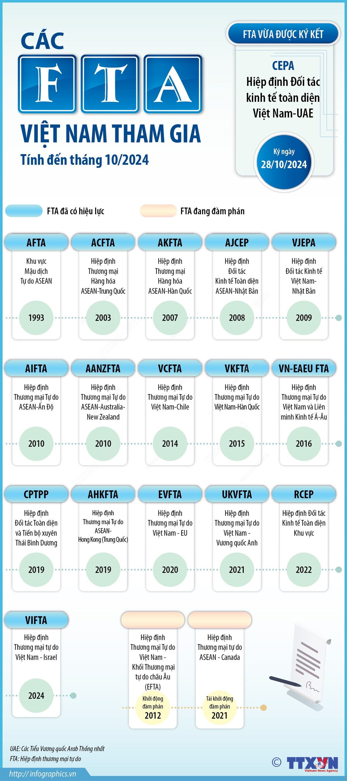 Các FTA Việt Nam tham gia (tính đến tháng 10/2024)