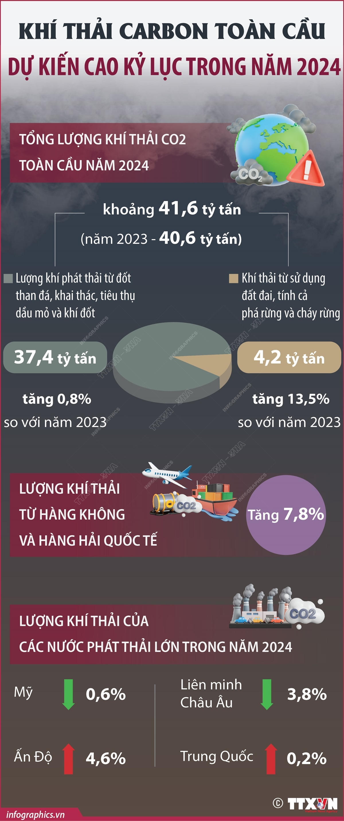 Năm 2024 chứng kiến một dấu mốc đáng lo ngại trong cuộc chiến chống biến đổi khí hậu. Theo Báo cáo Ngân sách Carbon toàn cầu giữa tháng 11/2024, lượng khí thải carbon dioxide toàn cầu, chủ yếu từ việc đốt nhiên liệu hóa thạch, dự kiến lên mức cao kỷ lục. Điều này đồng nghĩa với việc thế giới đang ngày càng xa rời mục tiêu hạn chế mức tăng nhiệt độ toàn cầu dưới 1,5 độ C so với thời kỳ tiền công nghiệp trong Hiệp định Paris về biến đổi khí hậu.