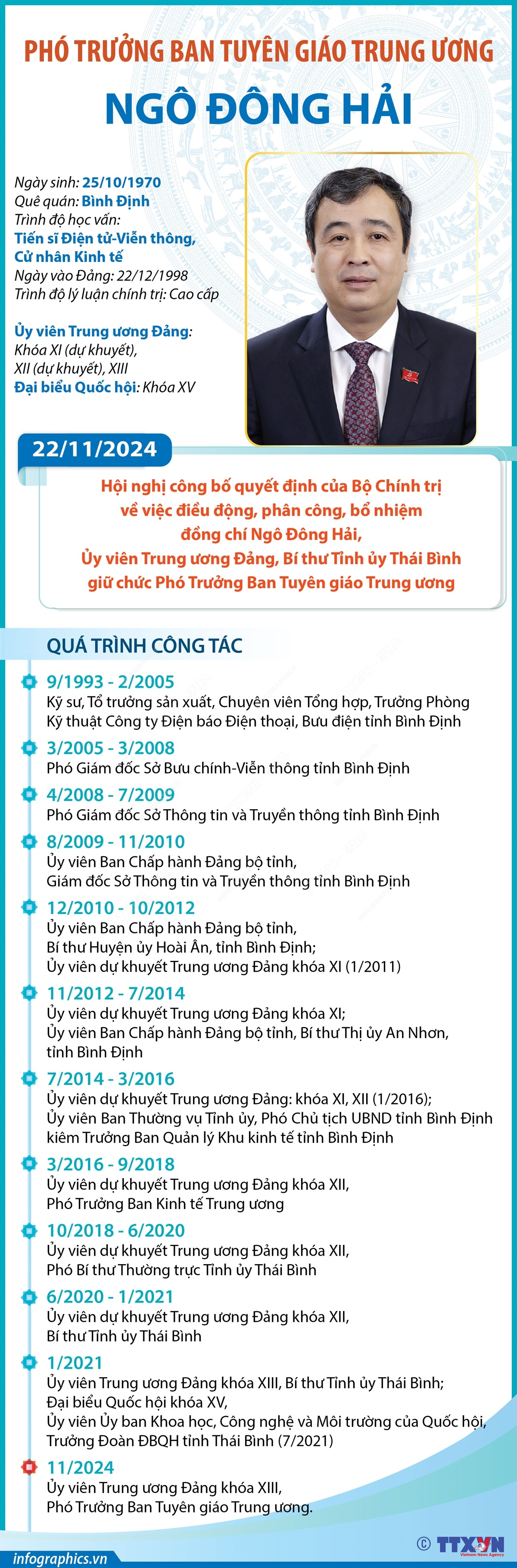 Ban Tuyên giáo Trung ương tổ chức Hội nghị công bố quyết định của Bộ Chính trị về việc điều động, phân công, bổ nhiệm Ủy viên Trung ương Đảng, Bí thư Tỉnh ủy Thái Bình Ngô Đông Hải giữ chức Phó Trưởng Ban Tuyên giáo Trung ương.