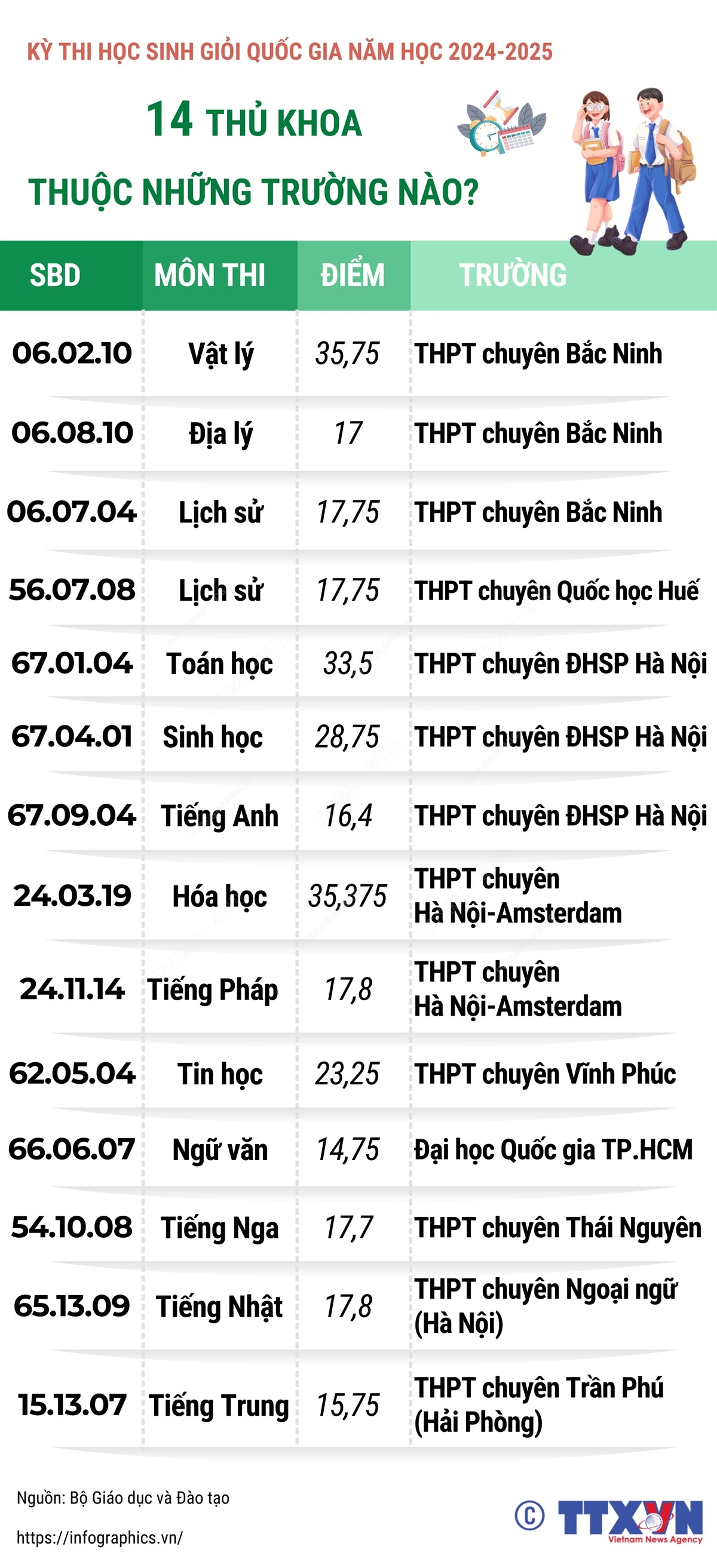 Kỳ thi chọn học sinh giỏi quốc gia 2024-2025: 14 thủ khoa thuộc những trường nào?