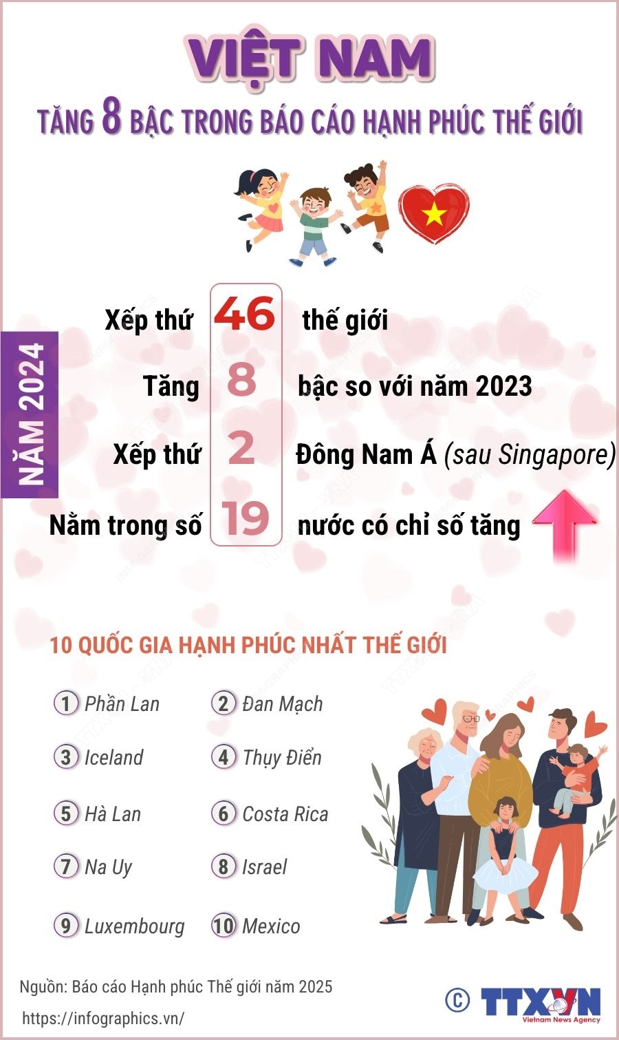 Việt Nam tăng 8 bậc trong Báo cáo Hạnh phúc Thế giới