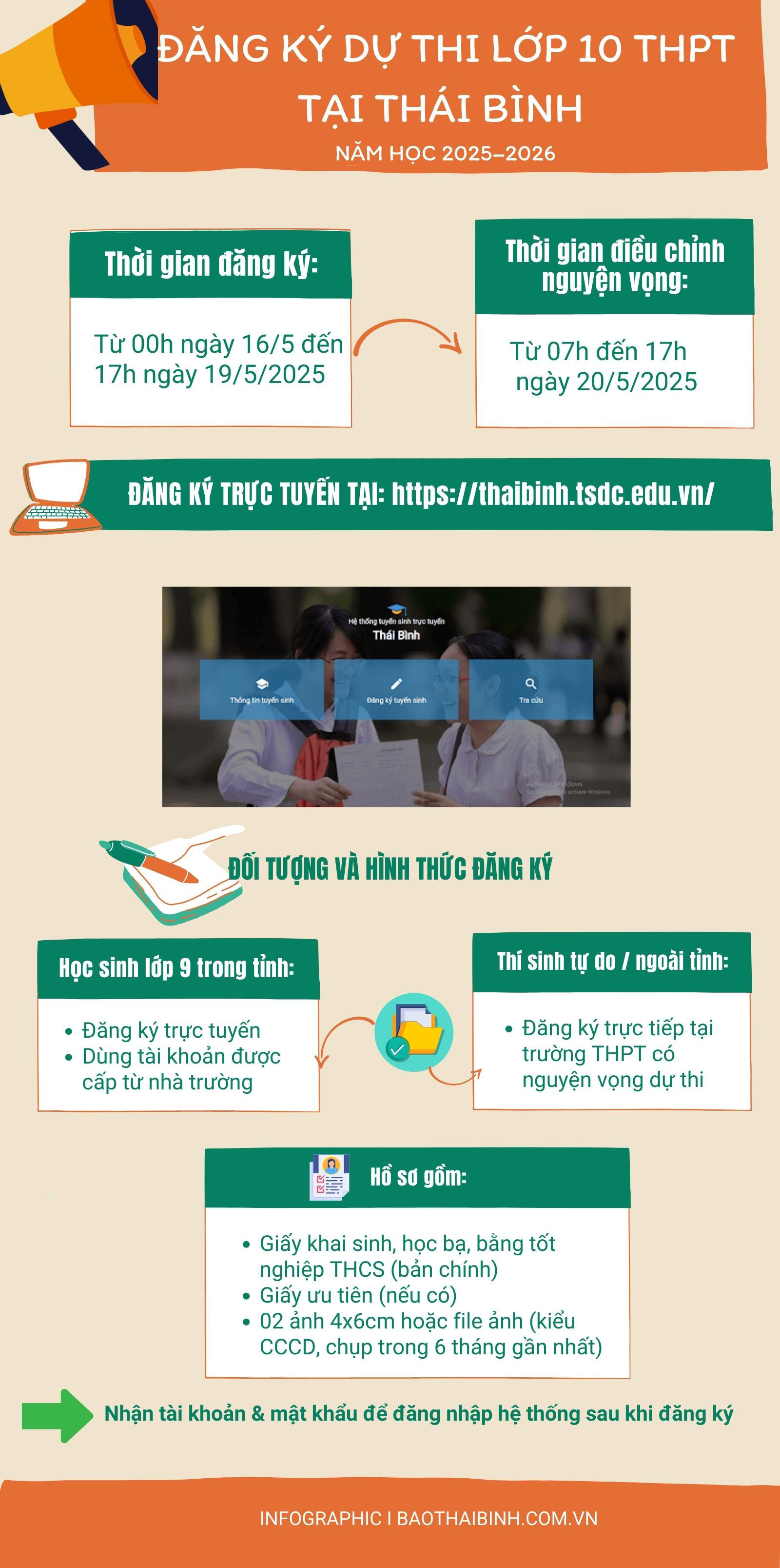 Hướng dẫn đăng ký dự thi lớp 10 năm học 2025 - 2026 tại Thái Bình