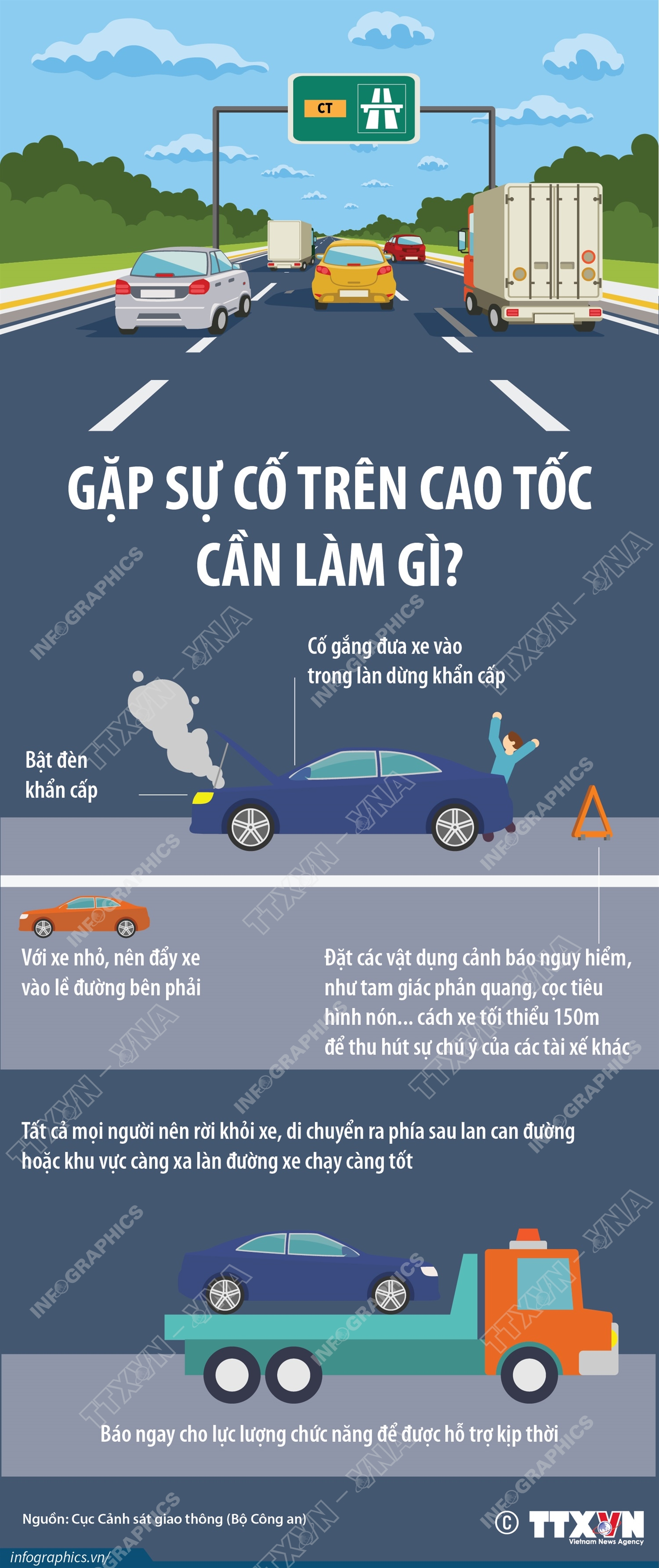 Đường cao tốc là nơi các xe lưu thông với tốc độ cao - tối thiểu là 60km/h và tối đa là từ 80 - 120km/h, nên rất dễ xảy ra tai nạn nghiêm trọng nếu gặp chướng ngại vật bất ngờ trên đường. Cục Cảnh sát giao thông (Bộ Công an) khuyến cáo các tài xế, khi điều khiển phương tiện trên đường phải giữ tốc độ, khoảng cách an toàn. Nếu gặp sự cố trên cao tốc thì cần báo ngay cho lực lượng chức năng và đặt vật cảnh báo an toàn.