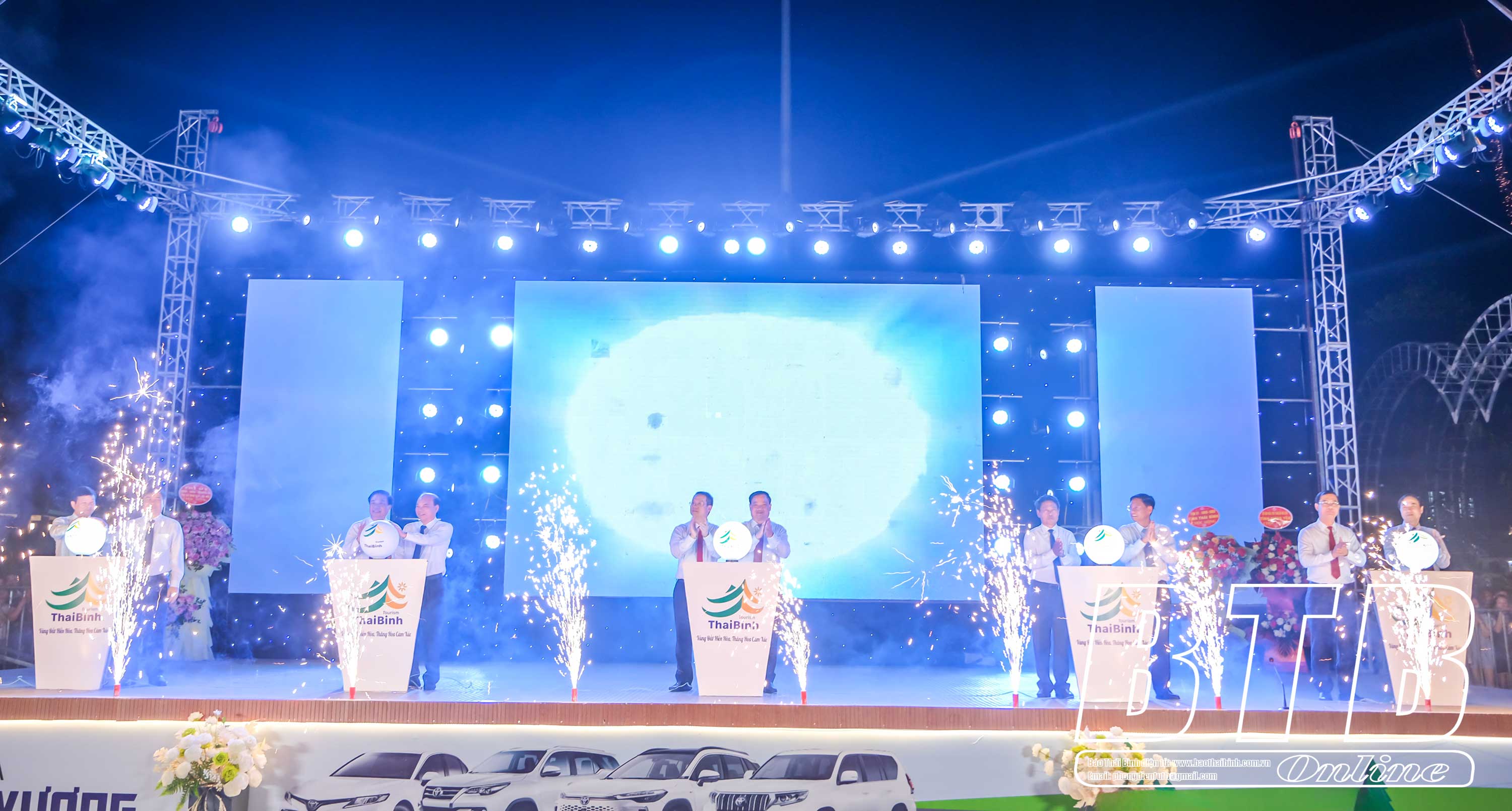 Các đồng chí lãnh đạo tỉnh thực hiện nghi thức khai mạc tuần du lịch tỉnh Thái Bình năm 2025.
