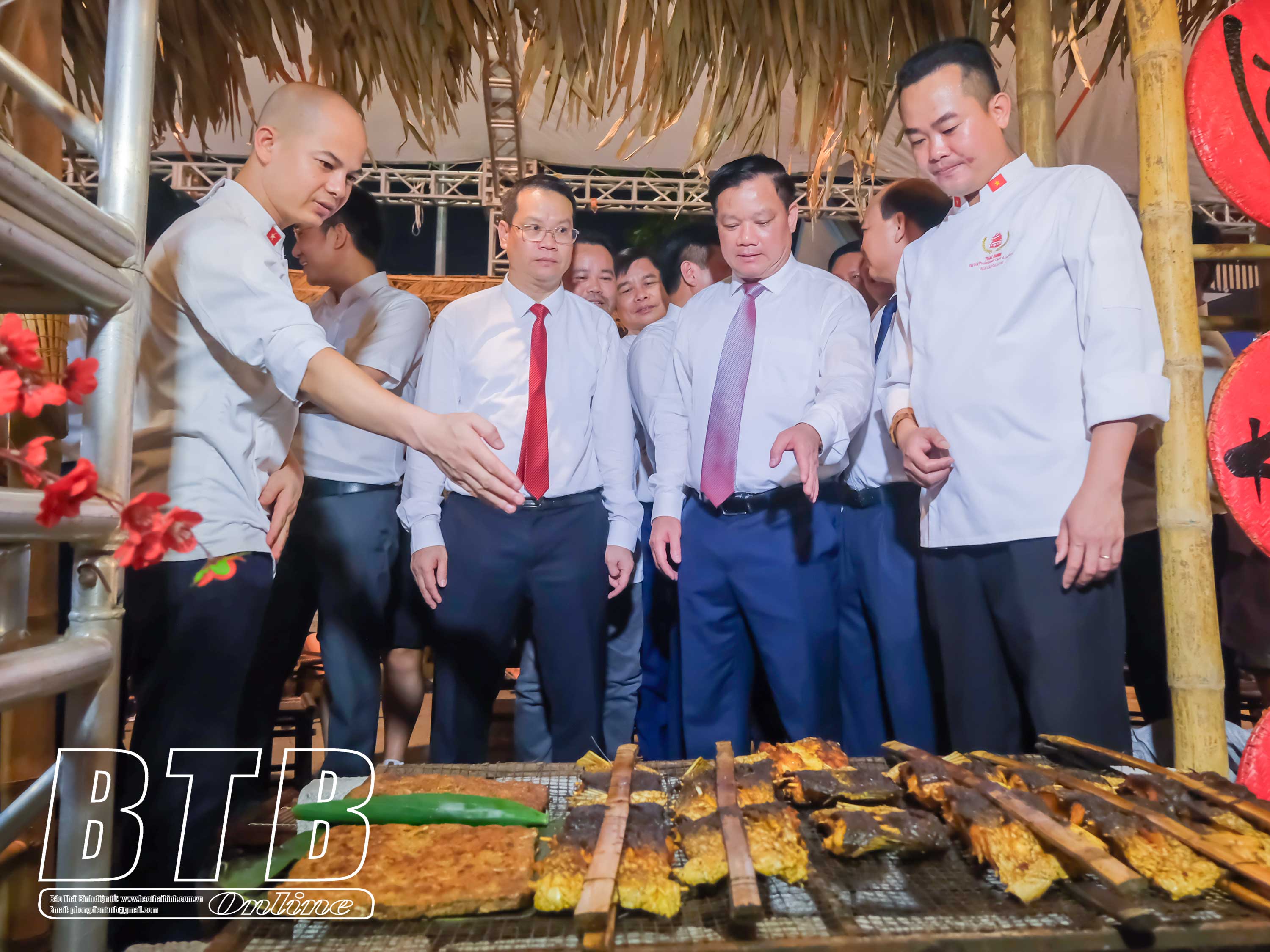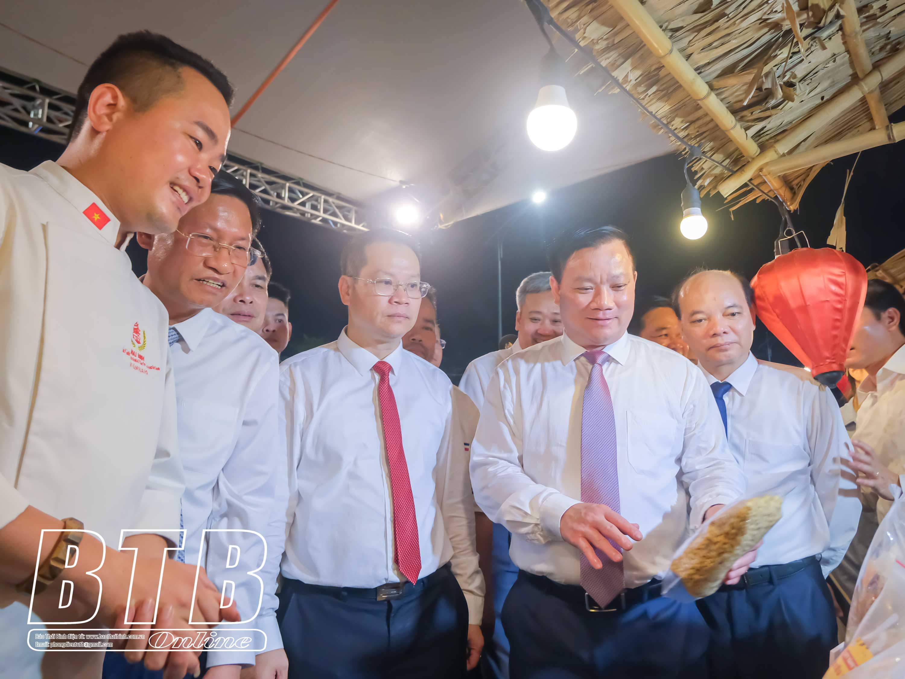 Đồng chí Nguyễn Khắc Thận, Bí thư Tỉnh uỷ cùng các đồng chí lãnh đạo tỉnh tham quan gian hàng tại phố đi bộ Đinh Tiên Hoàng.