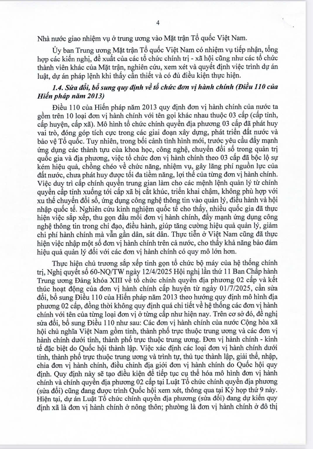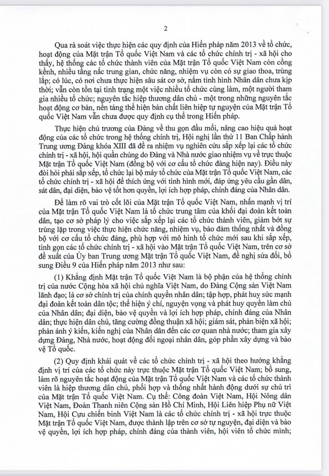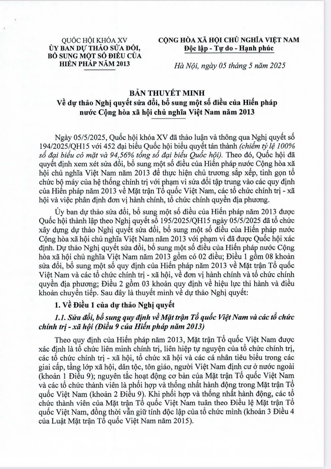 Thuyết minh về dự thảo Nghị quyết sửa đổi, bổ sung một số điều của Hiến pháp