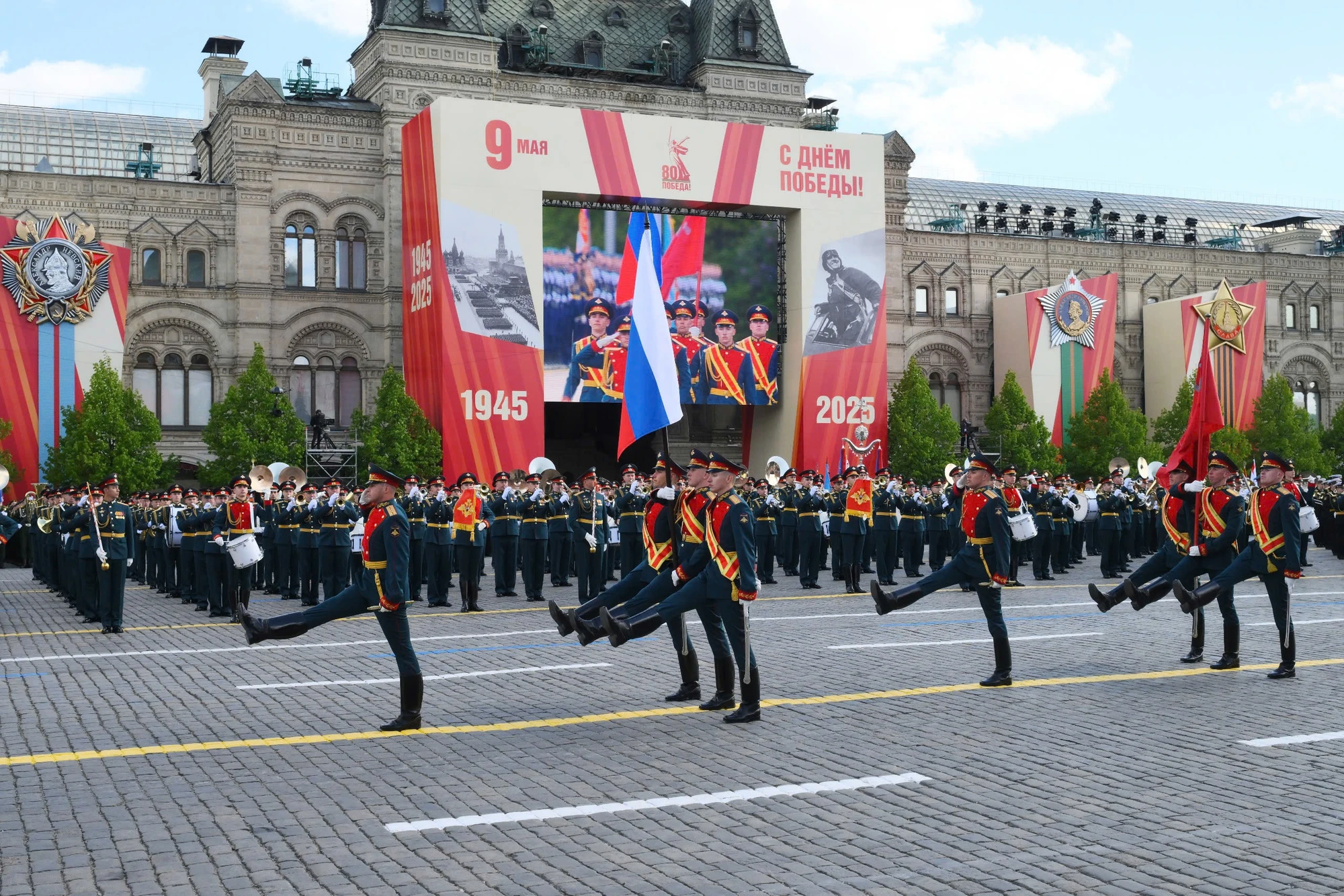 Tổng thống Vladimir Putin phát biểu khai mạc lễ duyệt binh, khẳng định ý nghĩa lịch sử của Chiến thắng trong Chiến tranh Vệ quốc vĩ đại cách đây 80 năm và tinh thần đoàn kết chống chủ nghĩa phát-xít.
